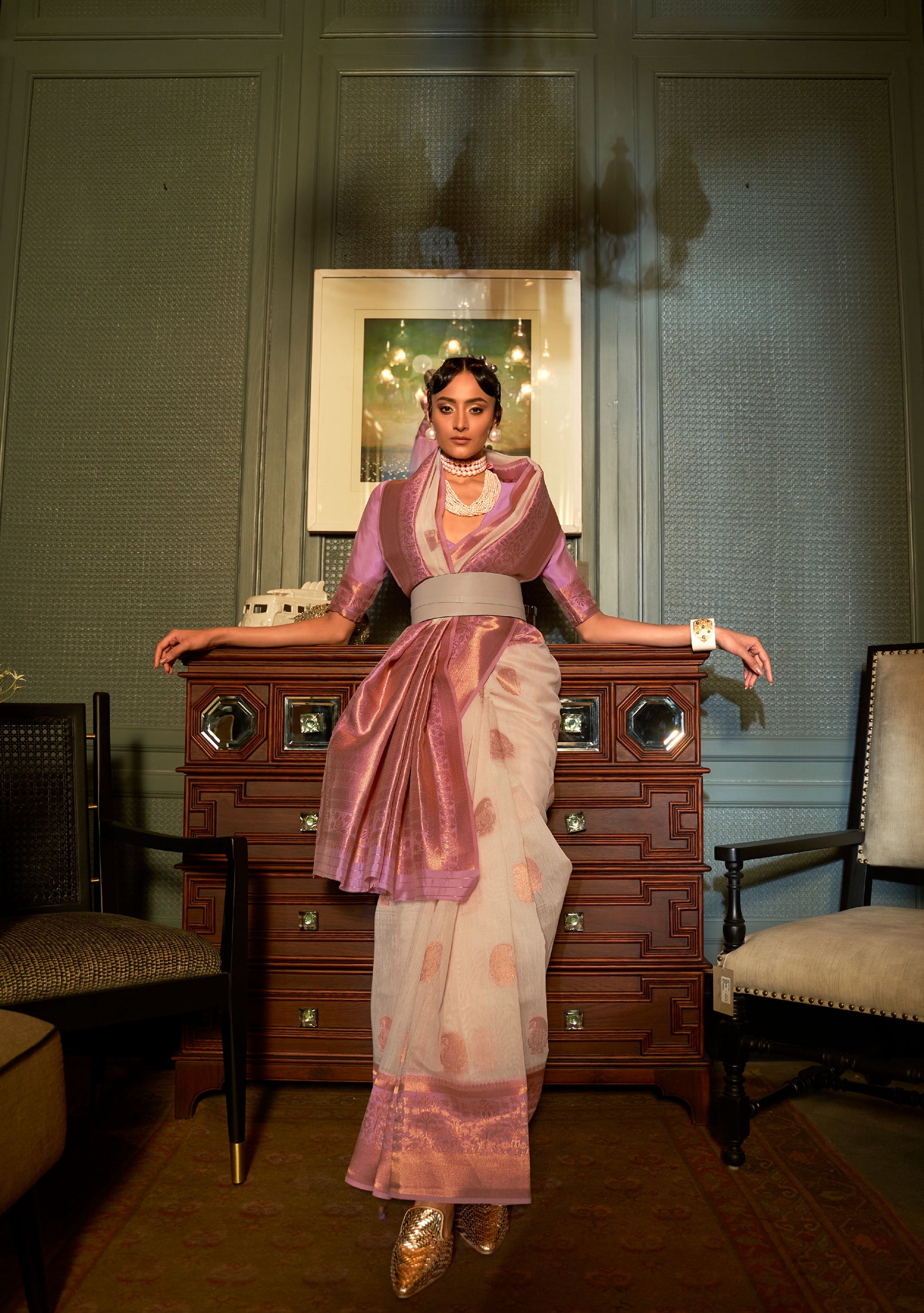 White Keith Linen Zari woven Saree