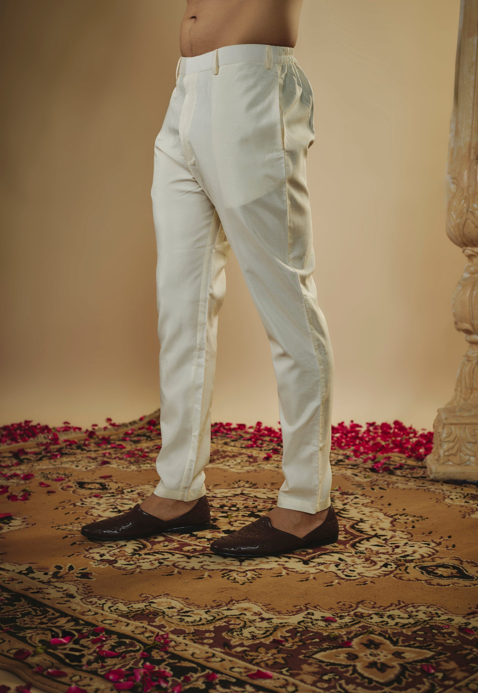 White yellow ombre art silk mirror work kurta with with lucknowi jacket and pants.