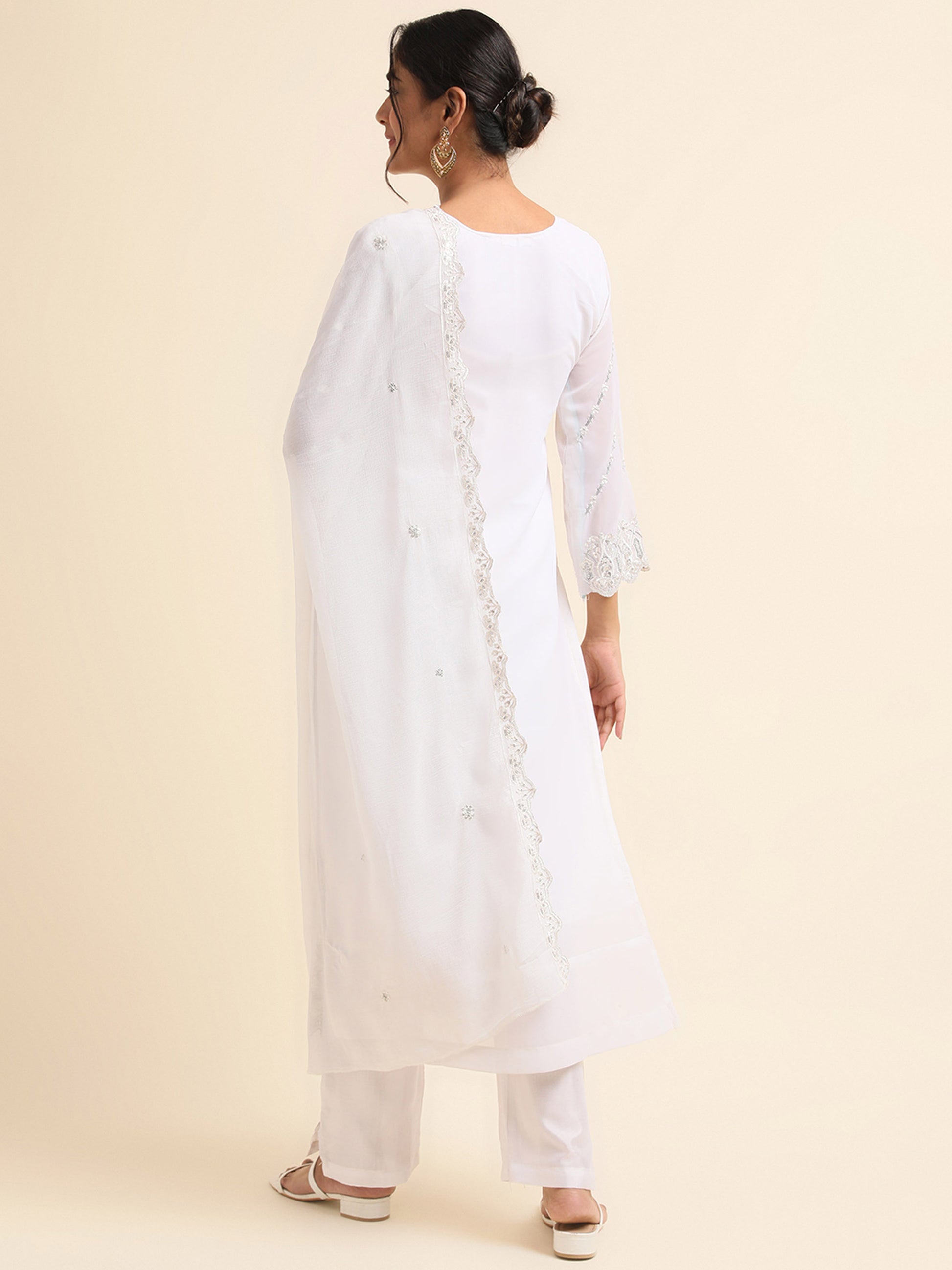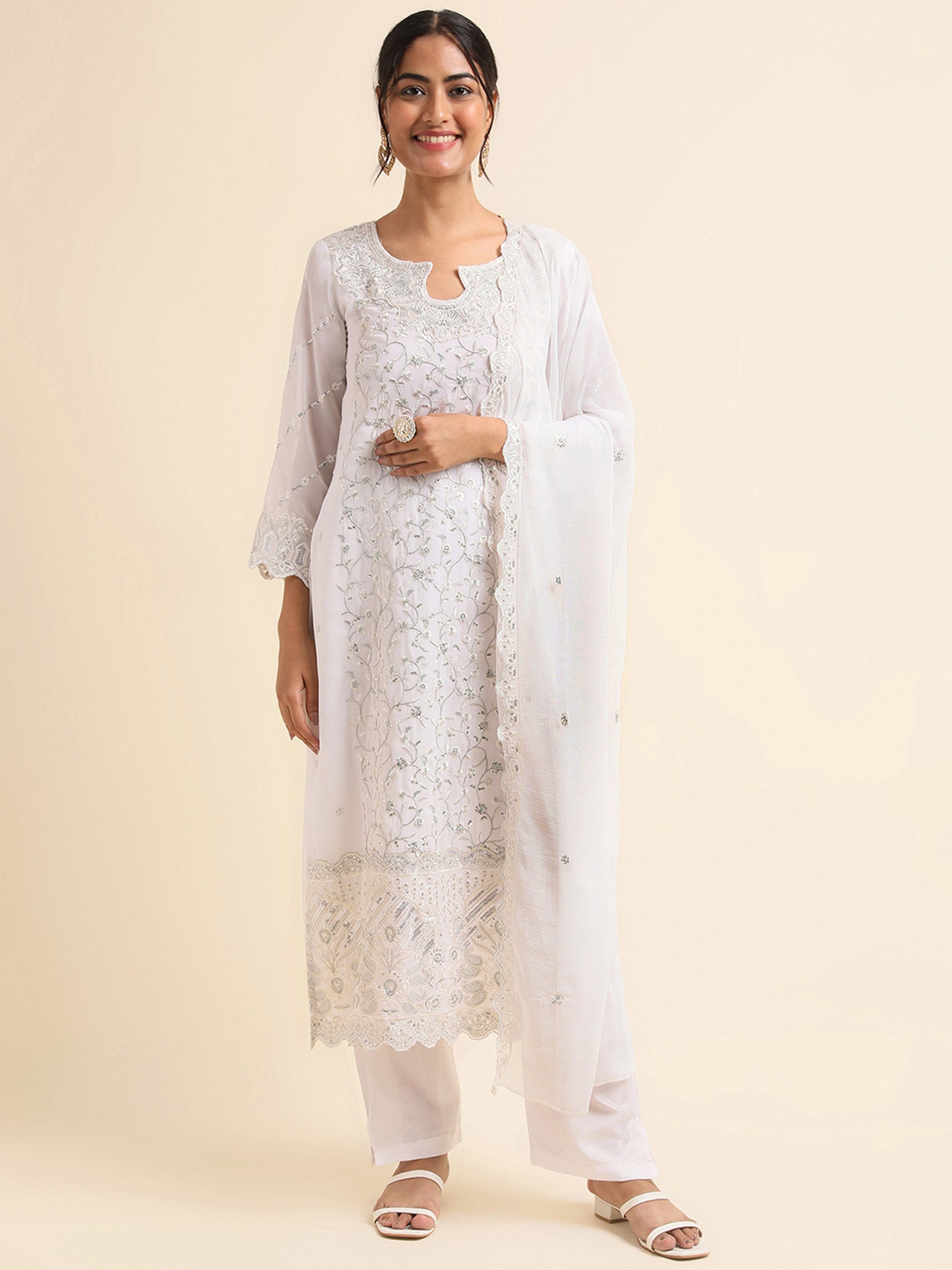 White zari embroidered Faux Georgette Surya pakistani suit