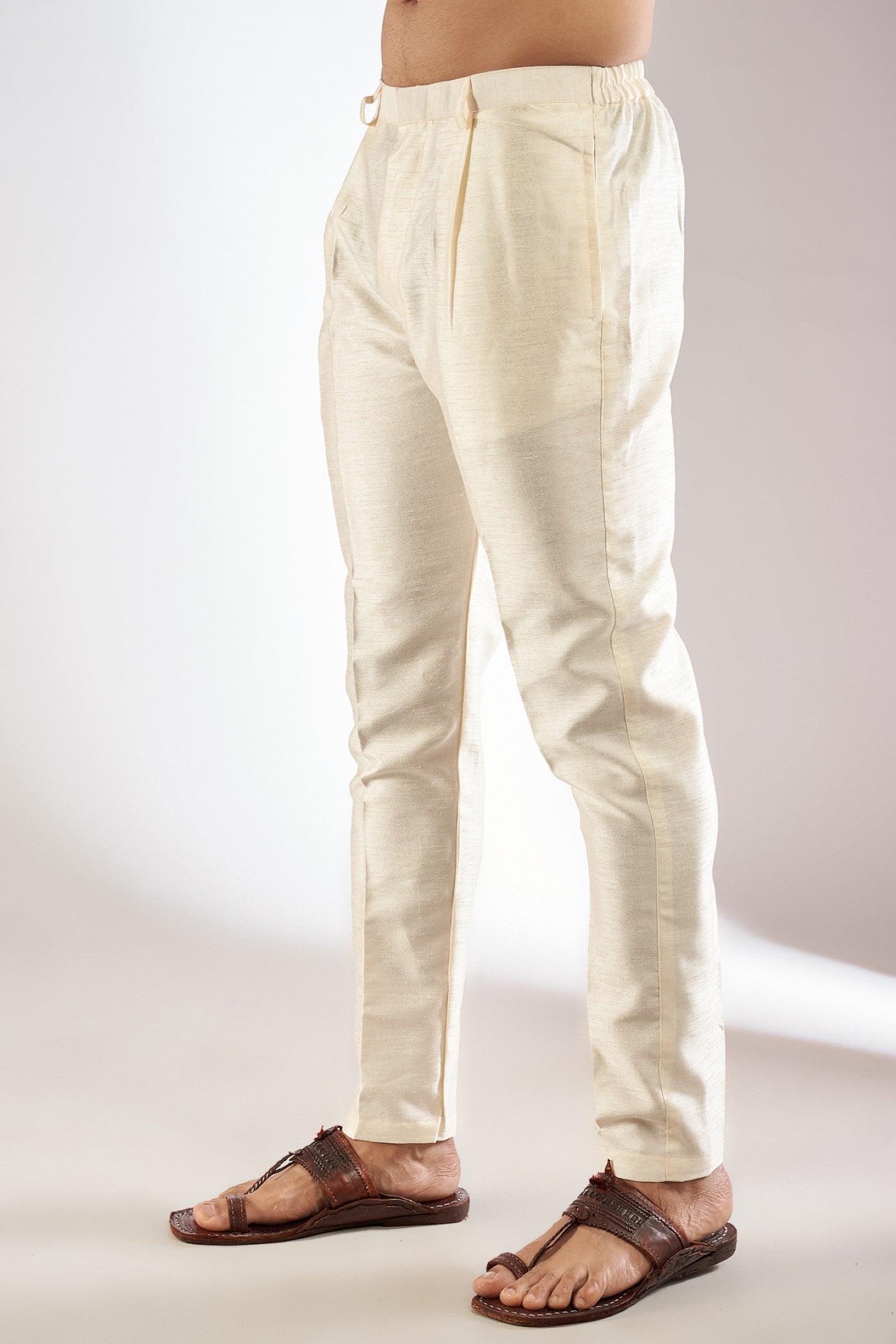 Featuring a yellow kurta in silk base with sequins embroidery including ajrakh print. It is paired with contrasting churidar pants.