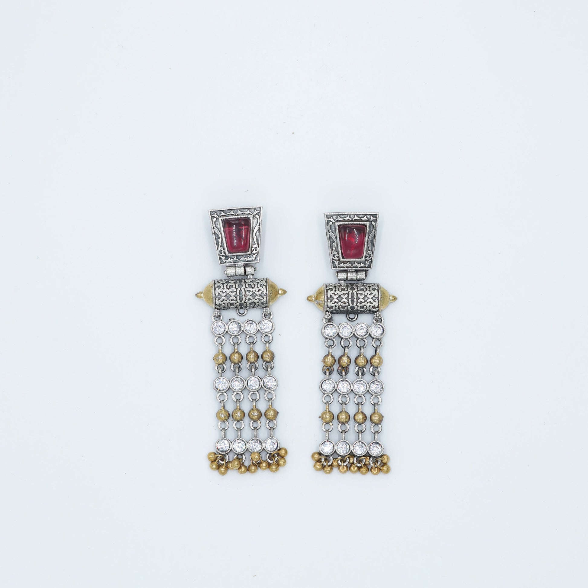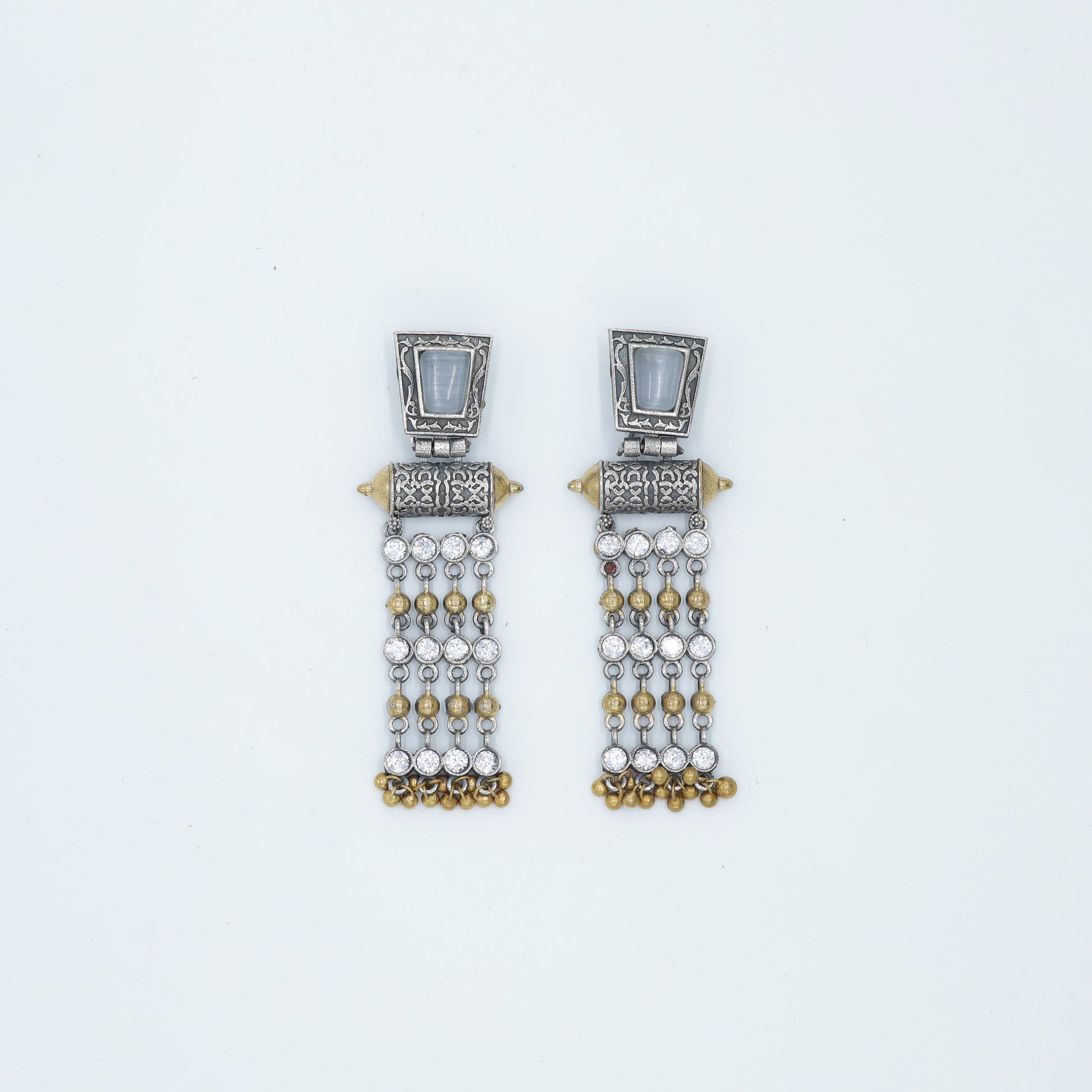 Zevar Club Effortless Long Tribal Silver-Gold Earrings