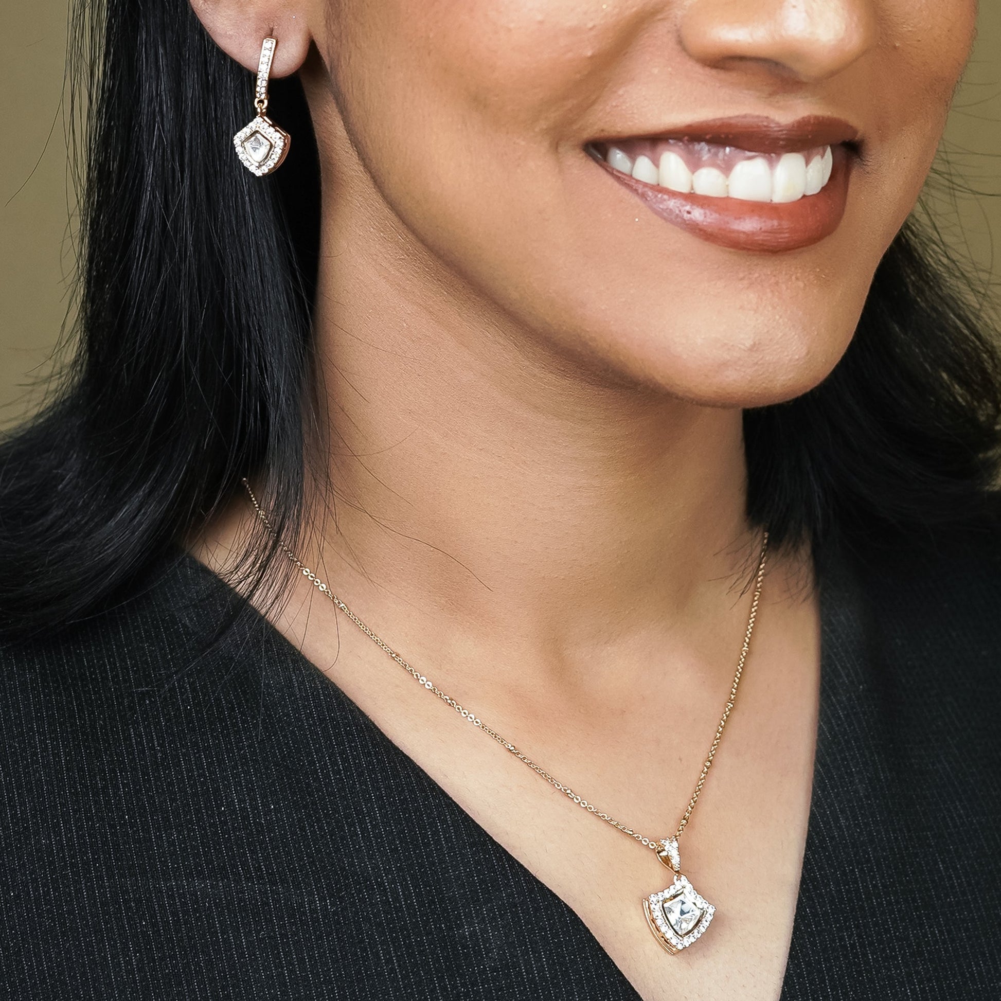 Zevar Club Women 22K Gold-Plated Cubic Zirconia Studded Angular Statement Pendant Necklace Set