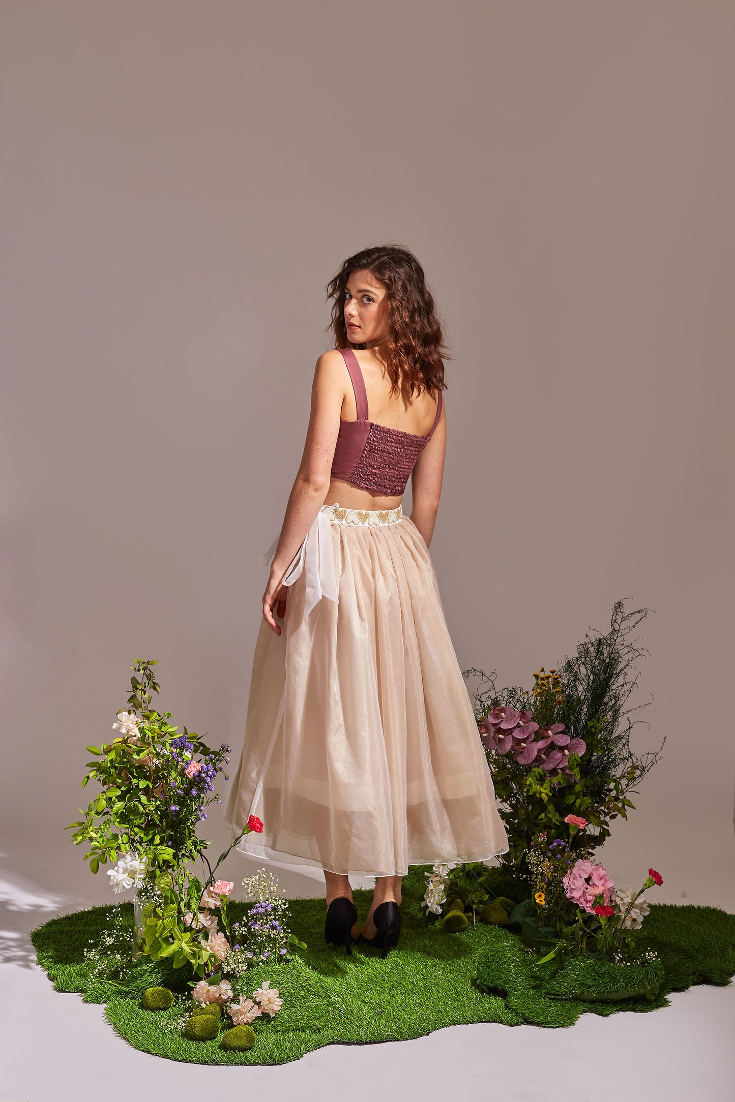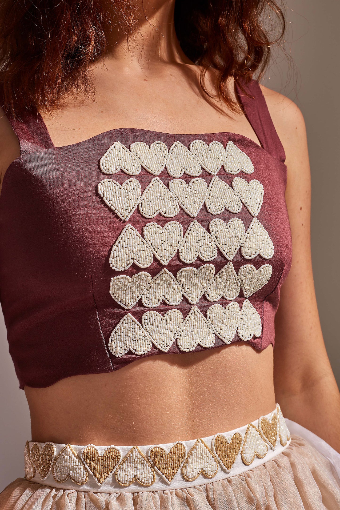 AMOUR Plum, Beige and White crop top skirt