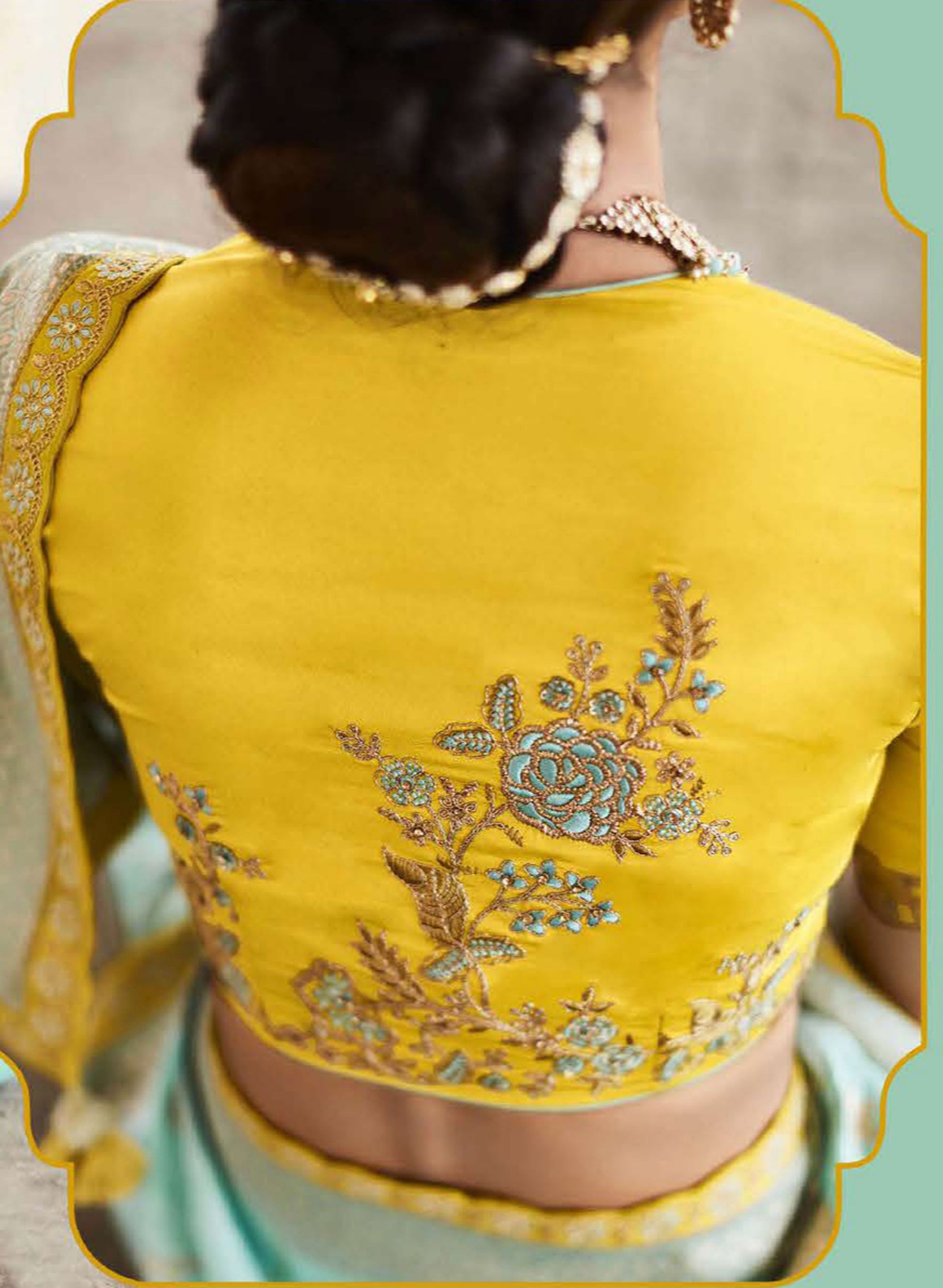 Aqua green Dola Silk Sequins Sindhuri Rani Wedding saree