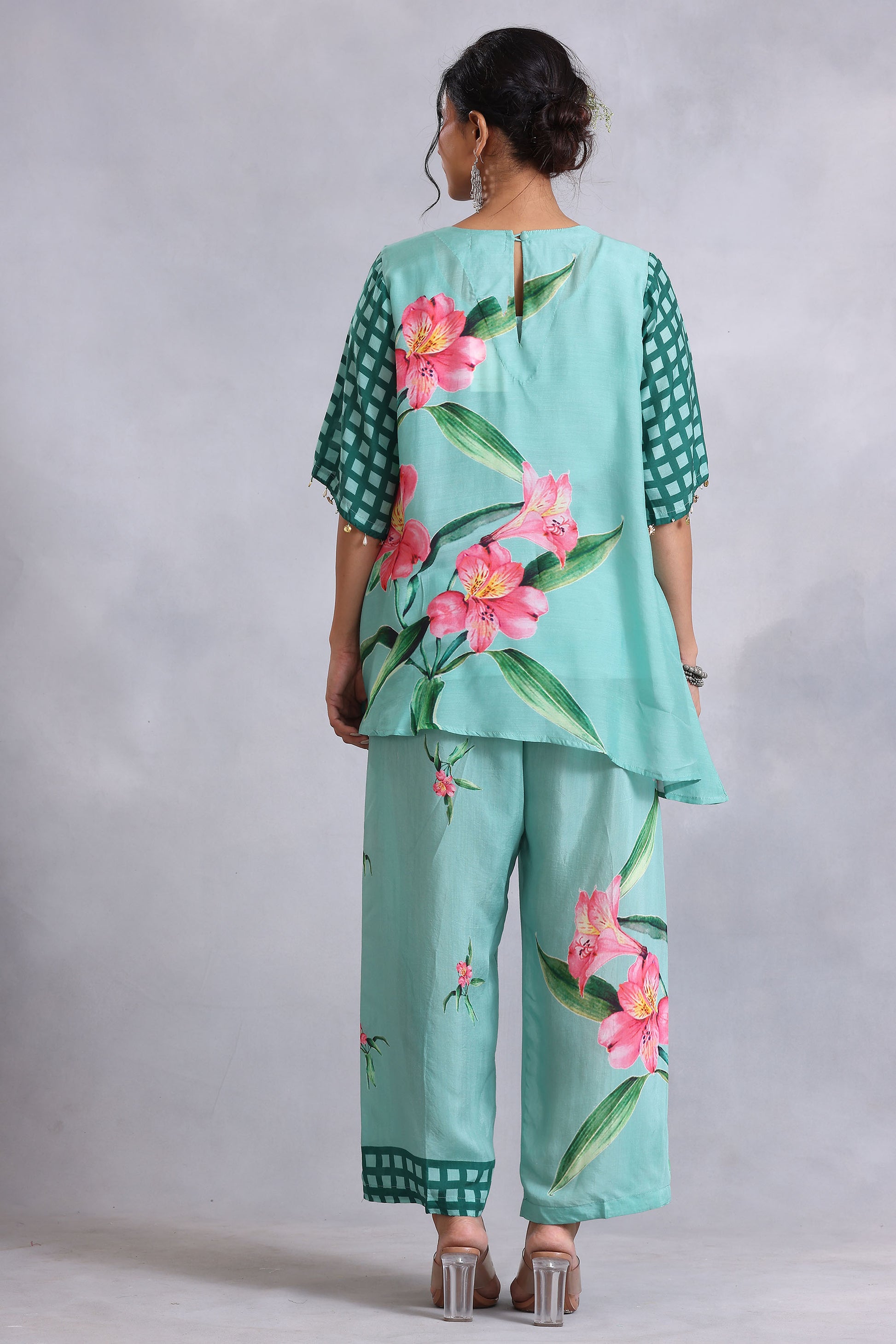 Asymmetric Sea Green Cotton Silk Sunehri kurta set