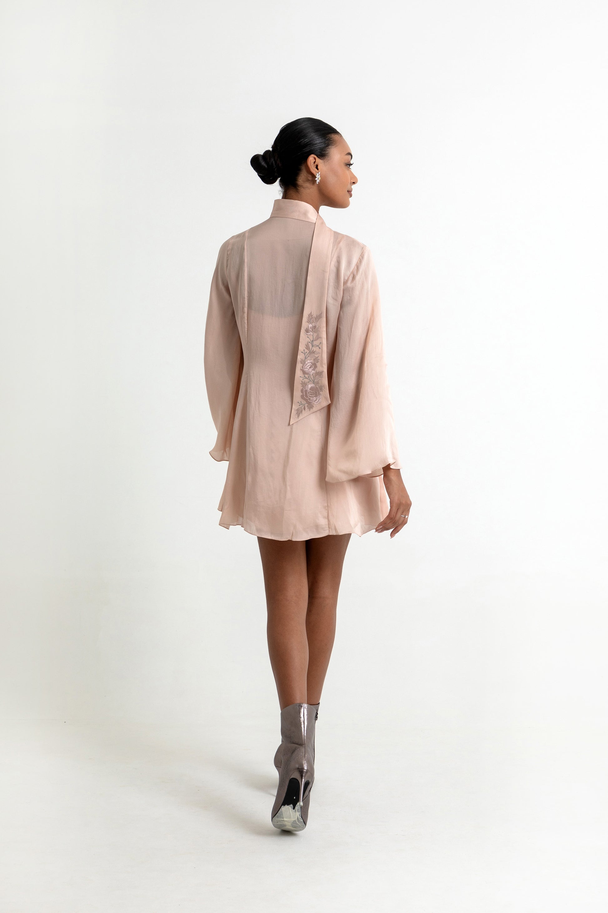 Soft, flirty, and undeniably chic — the Aubrielle dress is a standout piece. With delicately flared sleeves and tonal embroidery detail along the tie, it brings a playful twist to classic silhouettes. The lightweight fabric and fluid structure make it ideal for both day events and moonlit gatherings.