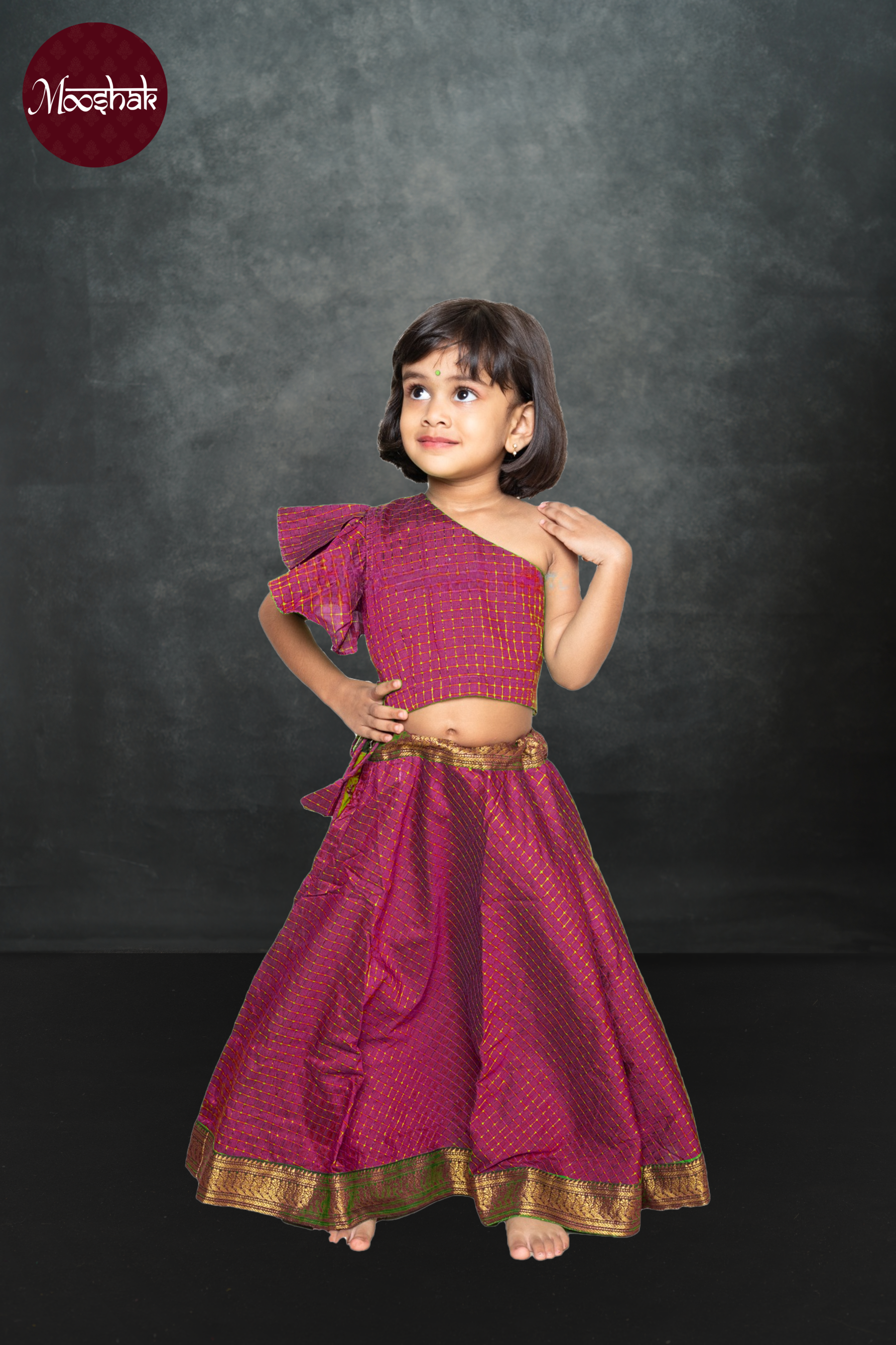 Avani2.0 - Skirt and Top in Purple checks with green zari border