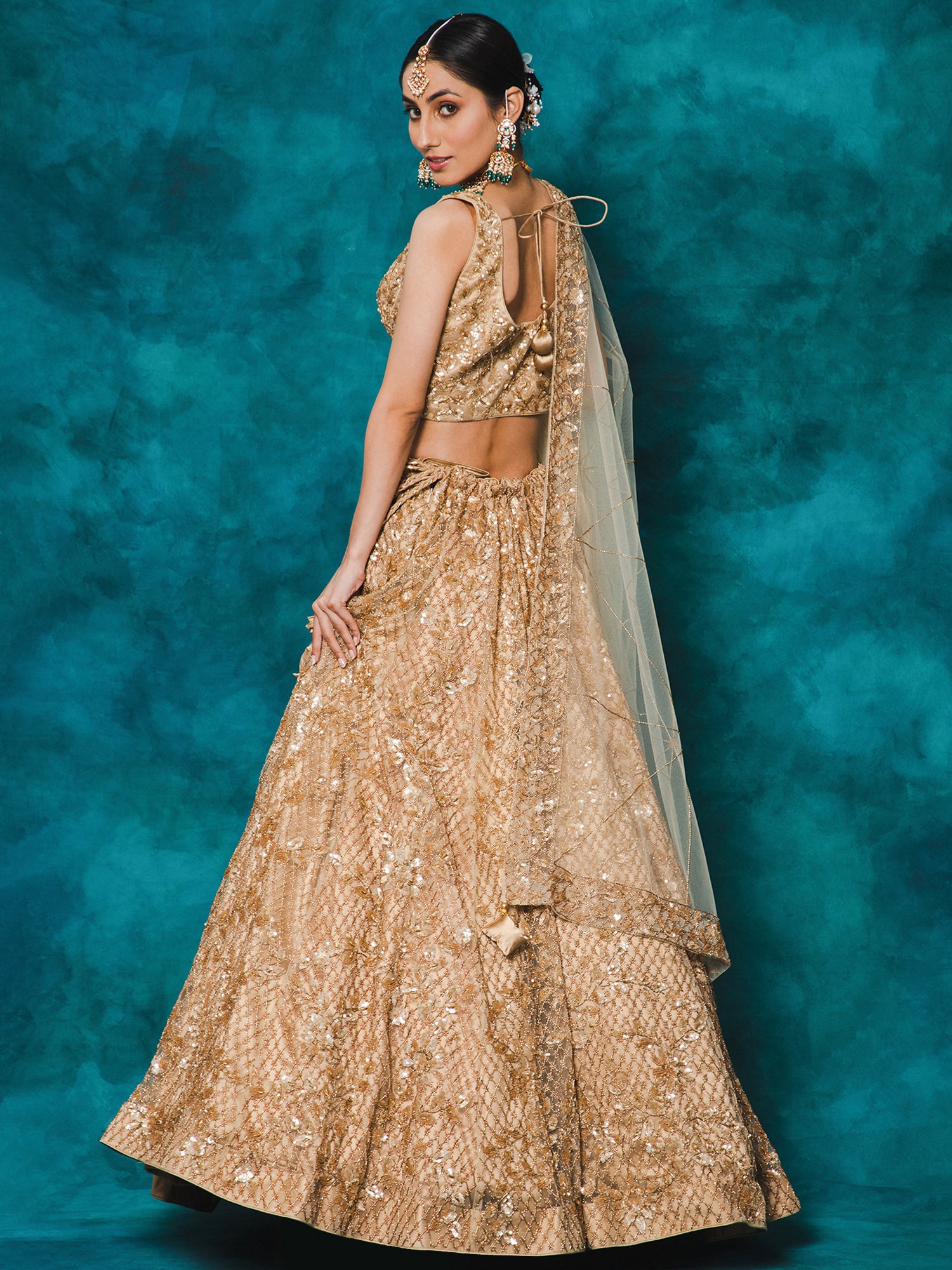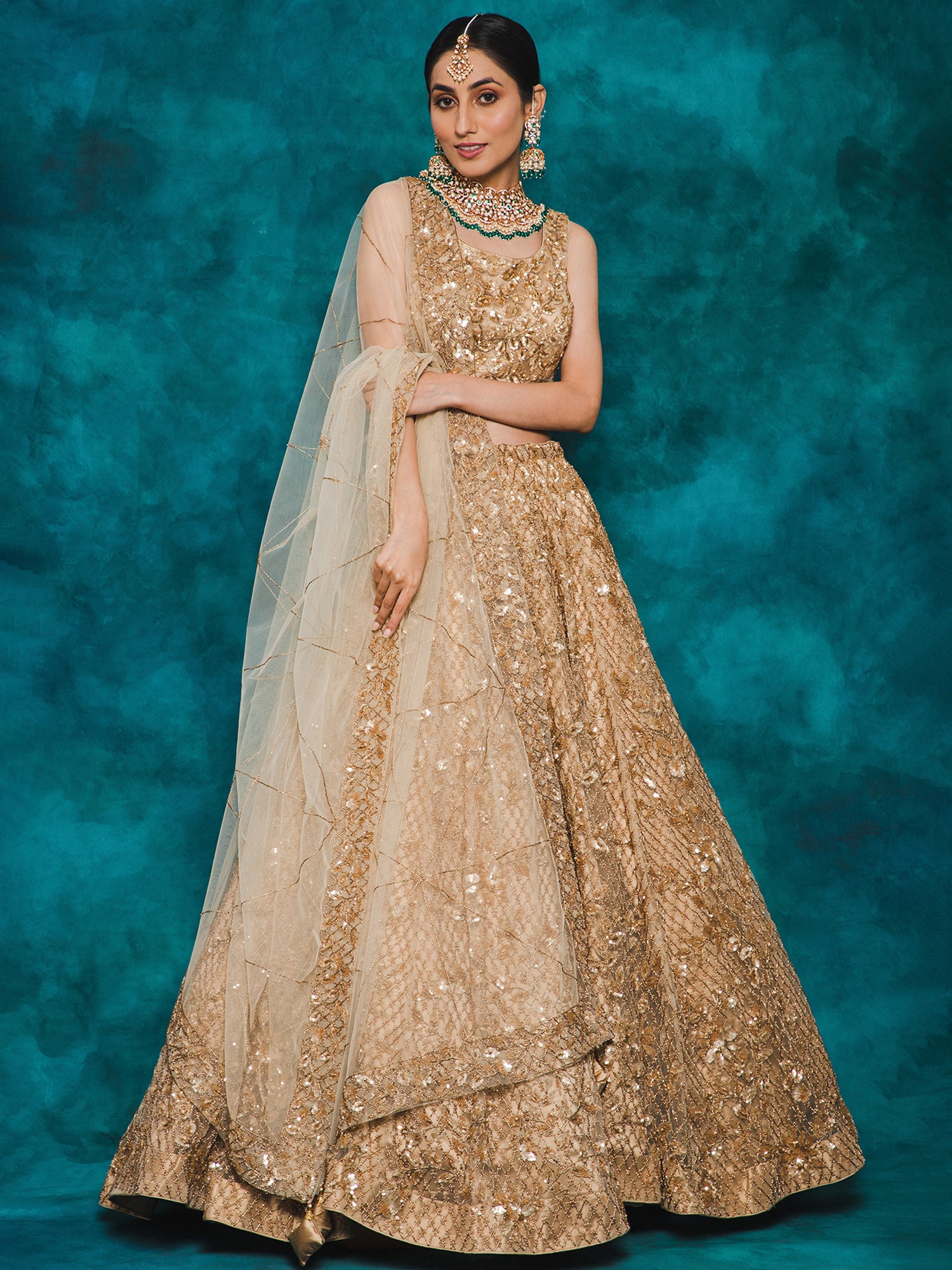 Beige Color Heavy Sequence Embroidery Bridal Lehenga