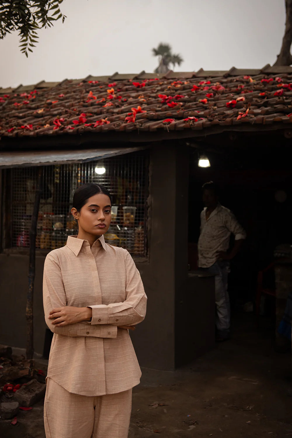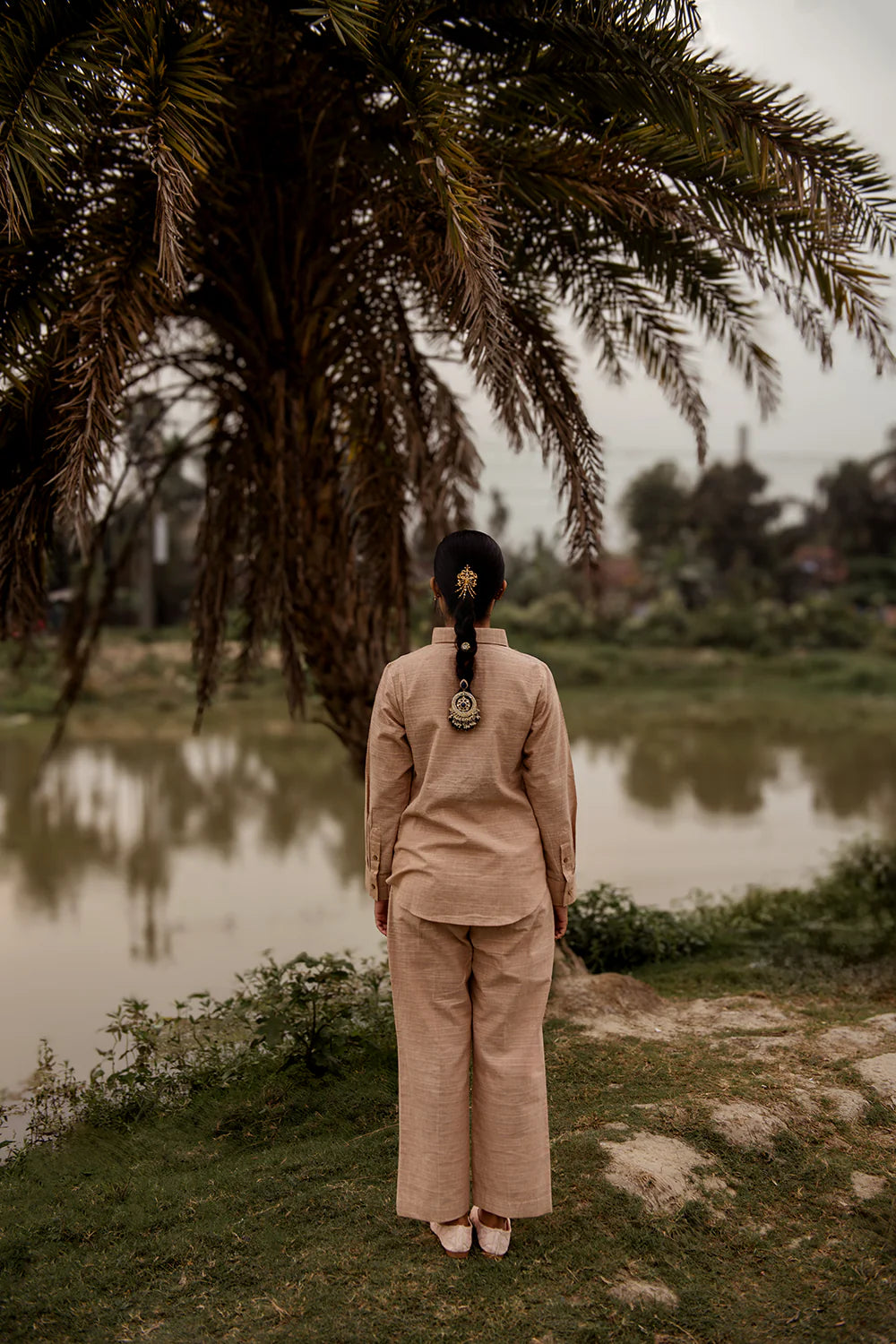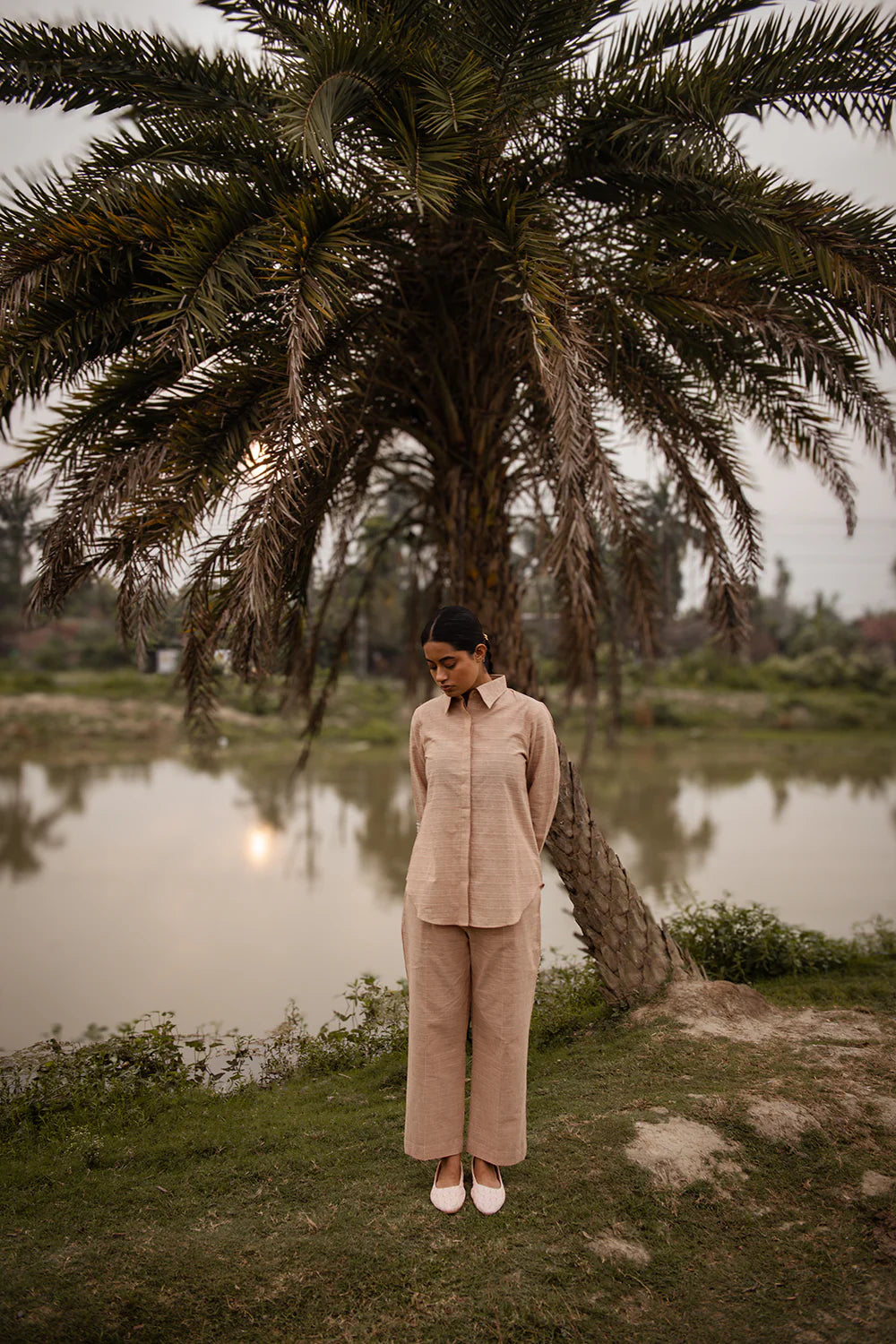 Effortless elegance meets comfort in this Beige Pure South Cotton Co-ord Set. Featuring a classic beige shirt paired with back-elastic straight pants, this set offers a relaxed yet refined look. Crafted from breathable handwoven cotton, it ensures all-day comfort while exuding minimal sophistication—perfect for work, travel, or casual outings.
