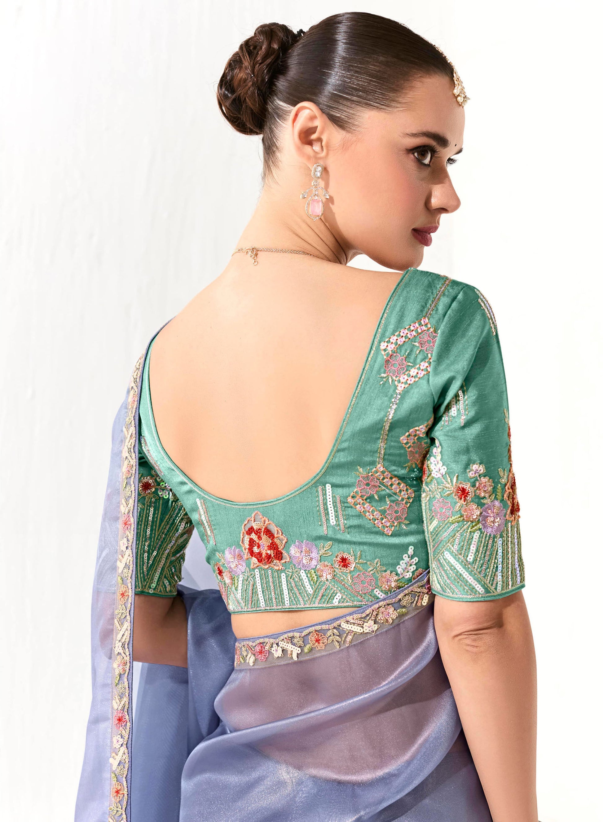 Blue Organza Tissue Heavy butta embroidery Designer Runway Saree