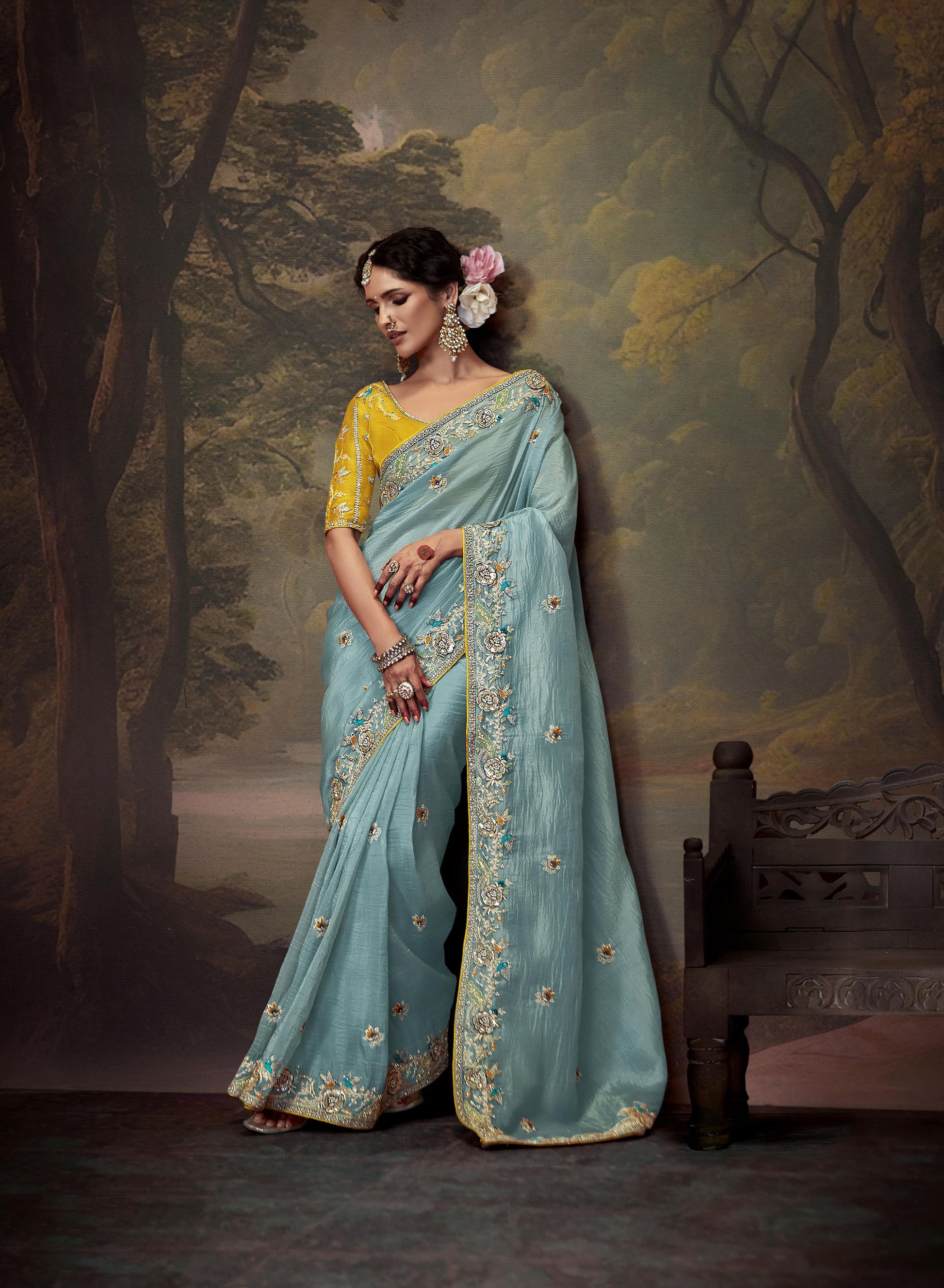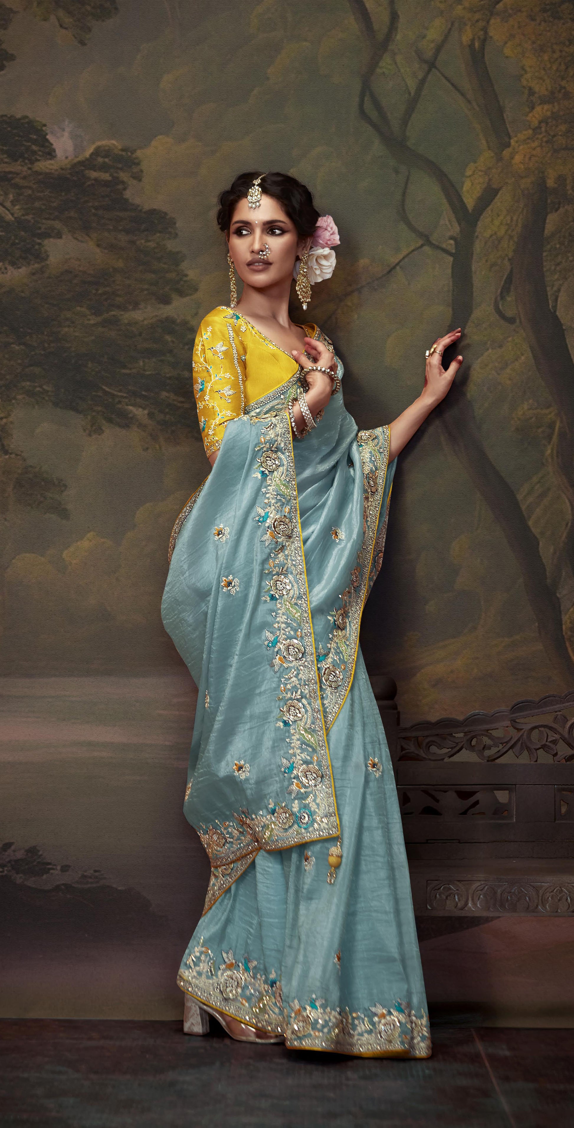 Blue Sequins Festive Naveli Saree