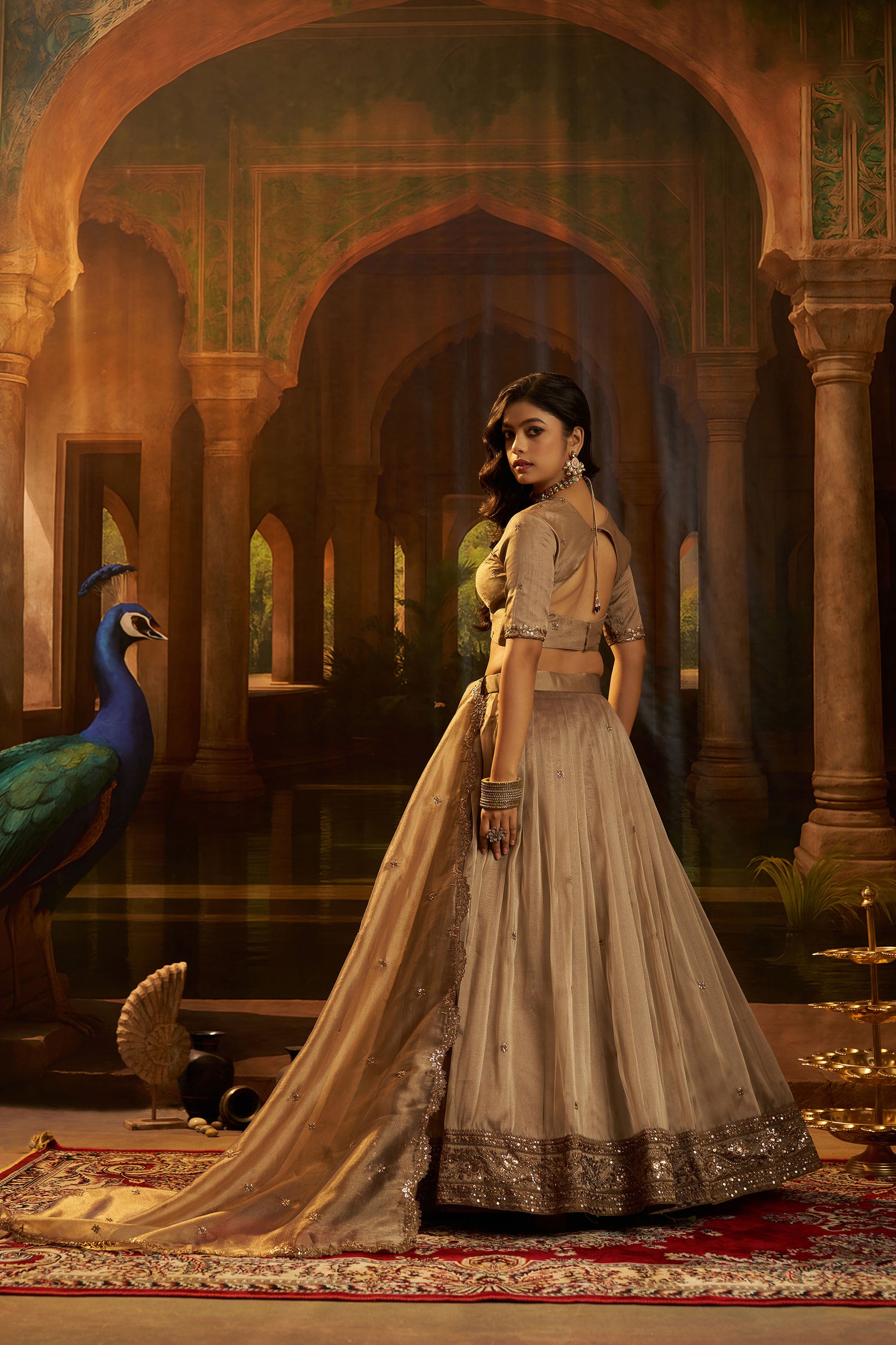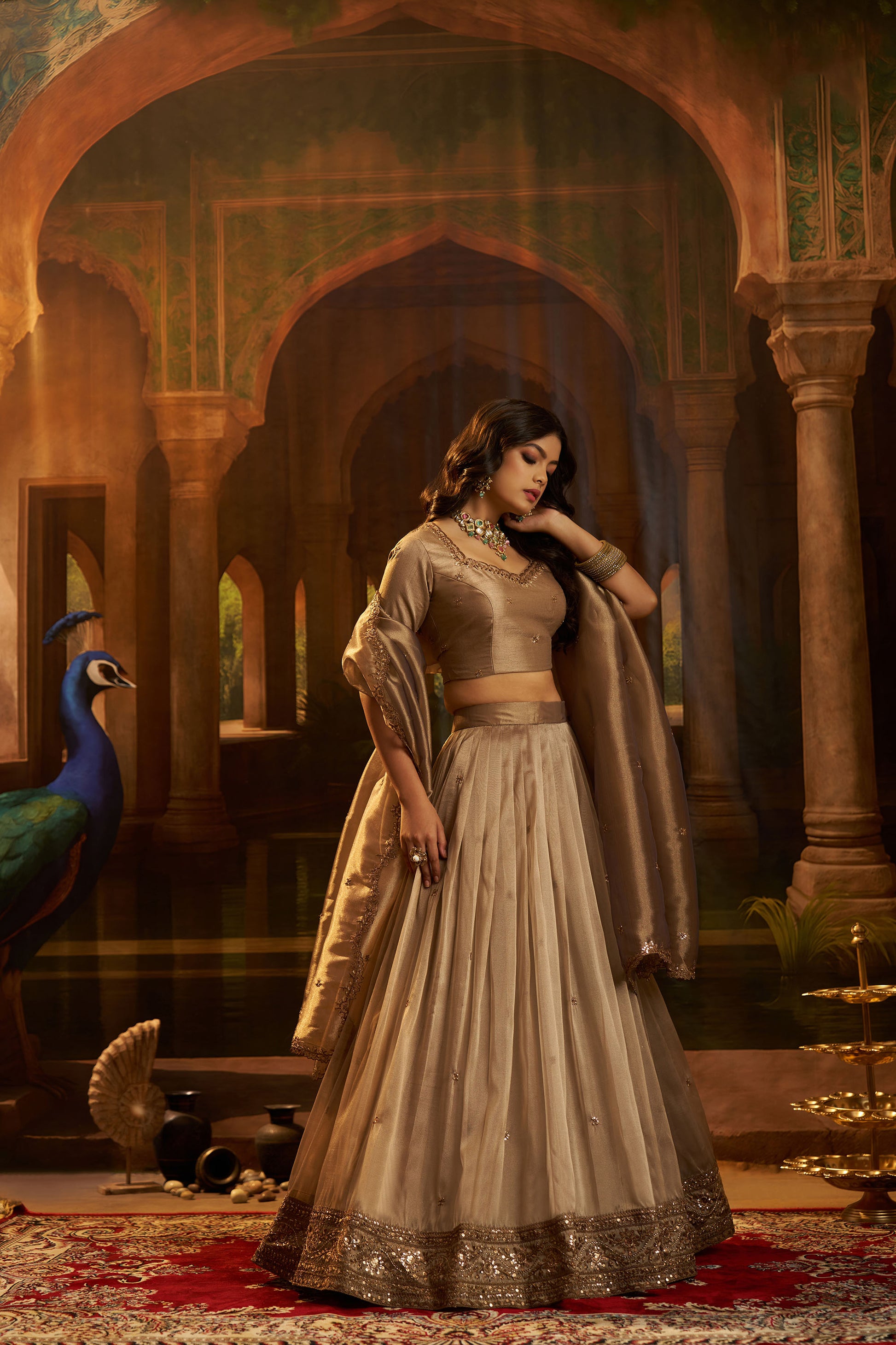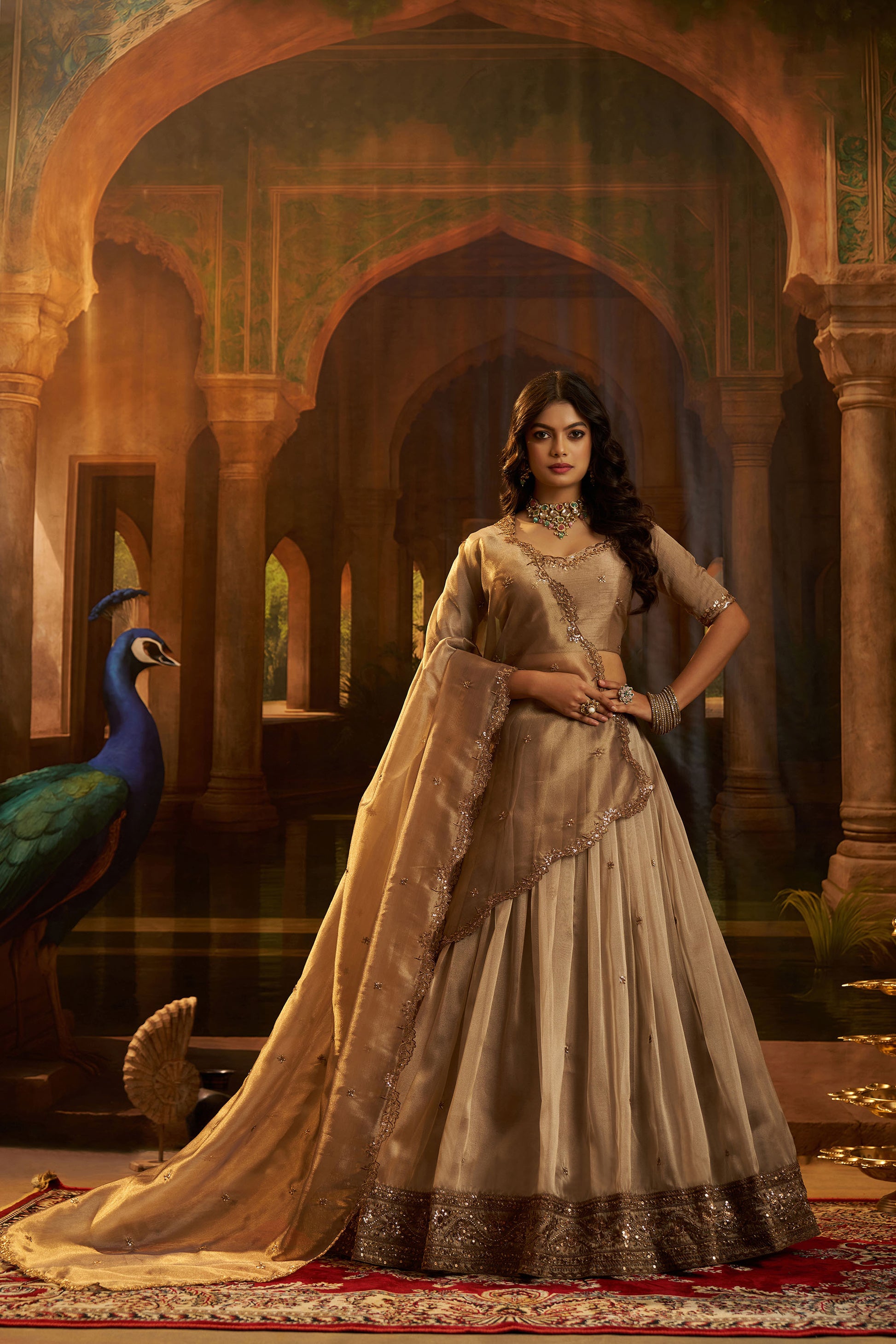 Brown Organza Zari & Dori Embroidered Bridesmaid Lehenga