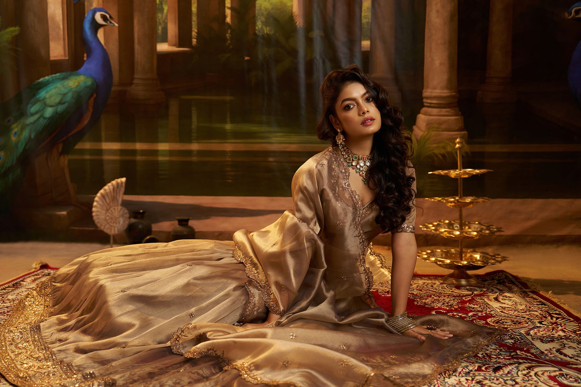 - Secure the dupatta in place with pins if needed, and arrange any embellishments or decorative elements for a polished look.