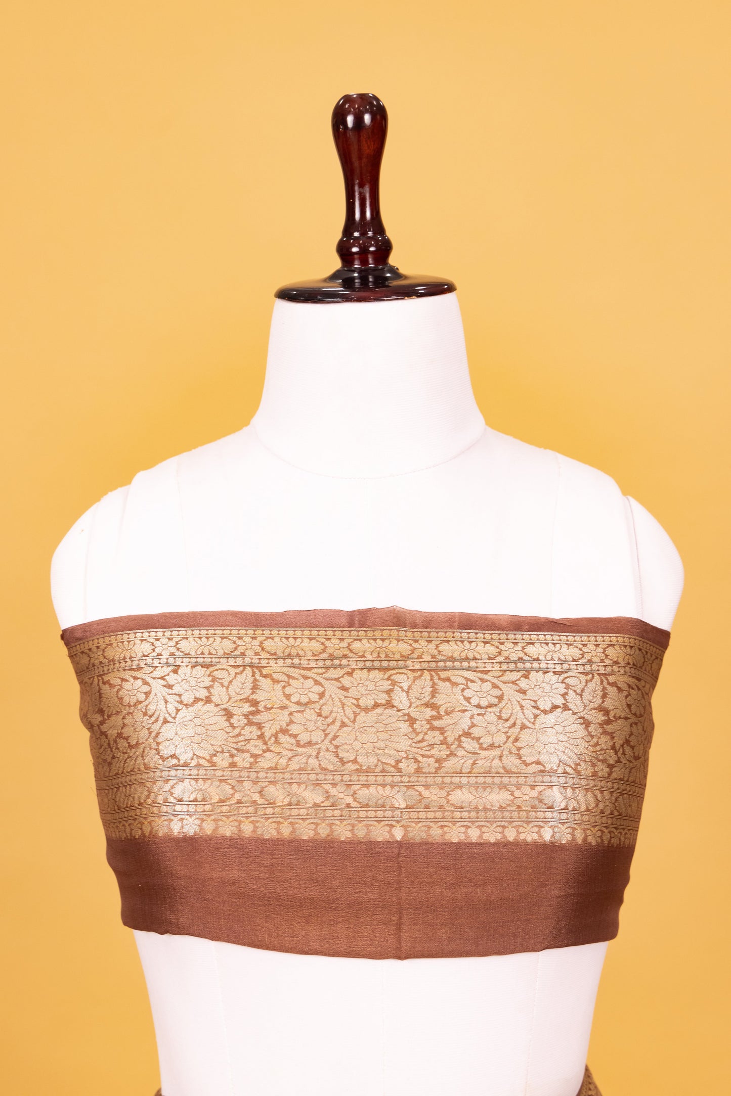 Description: Discover elegance and sophistication with our Chocolate Chiffon Pure Silk Cutwork Saree. The rich chocolate color and Banarasi Chiffon fabric make it both luxurious and comfortable. The intricate diagonal pattern and hand brush paint in a variety of colors with a gold zari border add a touch of artistic appeal. Complete your look with the Aachal, making you stand out in any occasion.