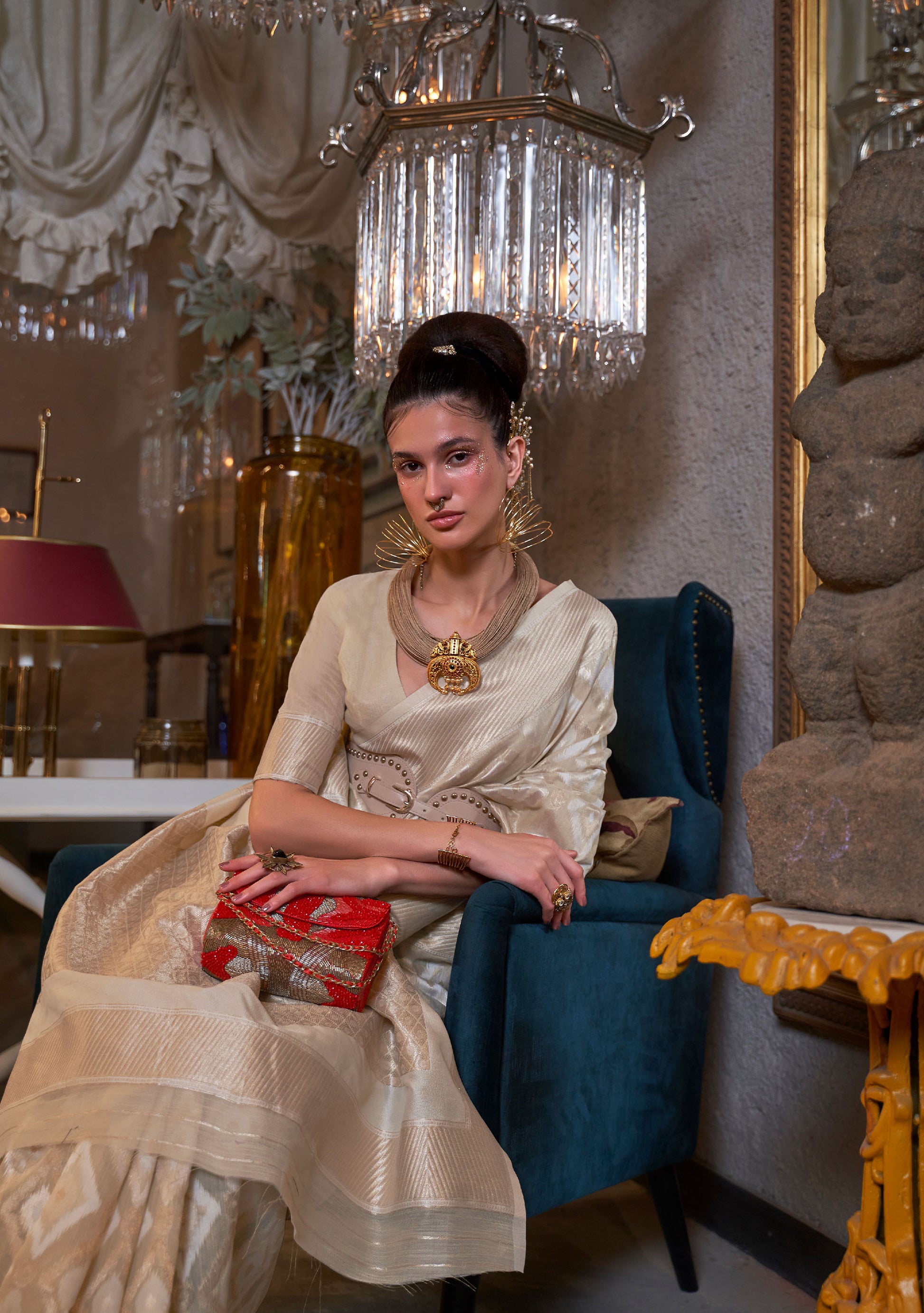 Does your wardrobe need more versatility? Then, check out this. Let your skin feel the refreshing touch as you adorn this superior-quality lightweight Saree to match the overall modest design.