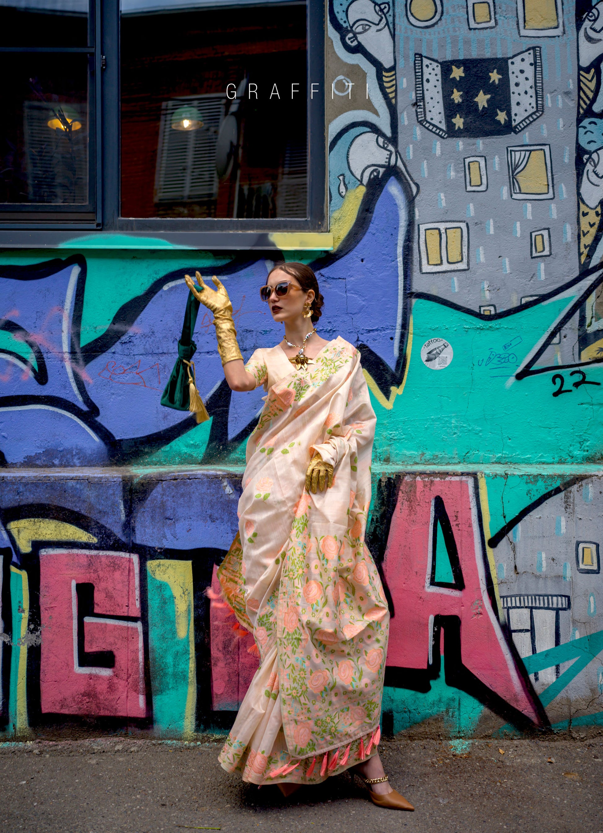 Does your wardrobe need more versatility? Then, check out this. Let your skin feel the refreshing touch as you adorn this superior-quality lightweight Saree to match the overall modest design.