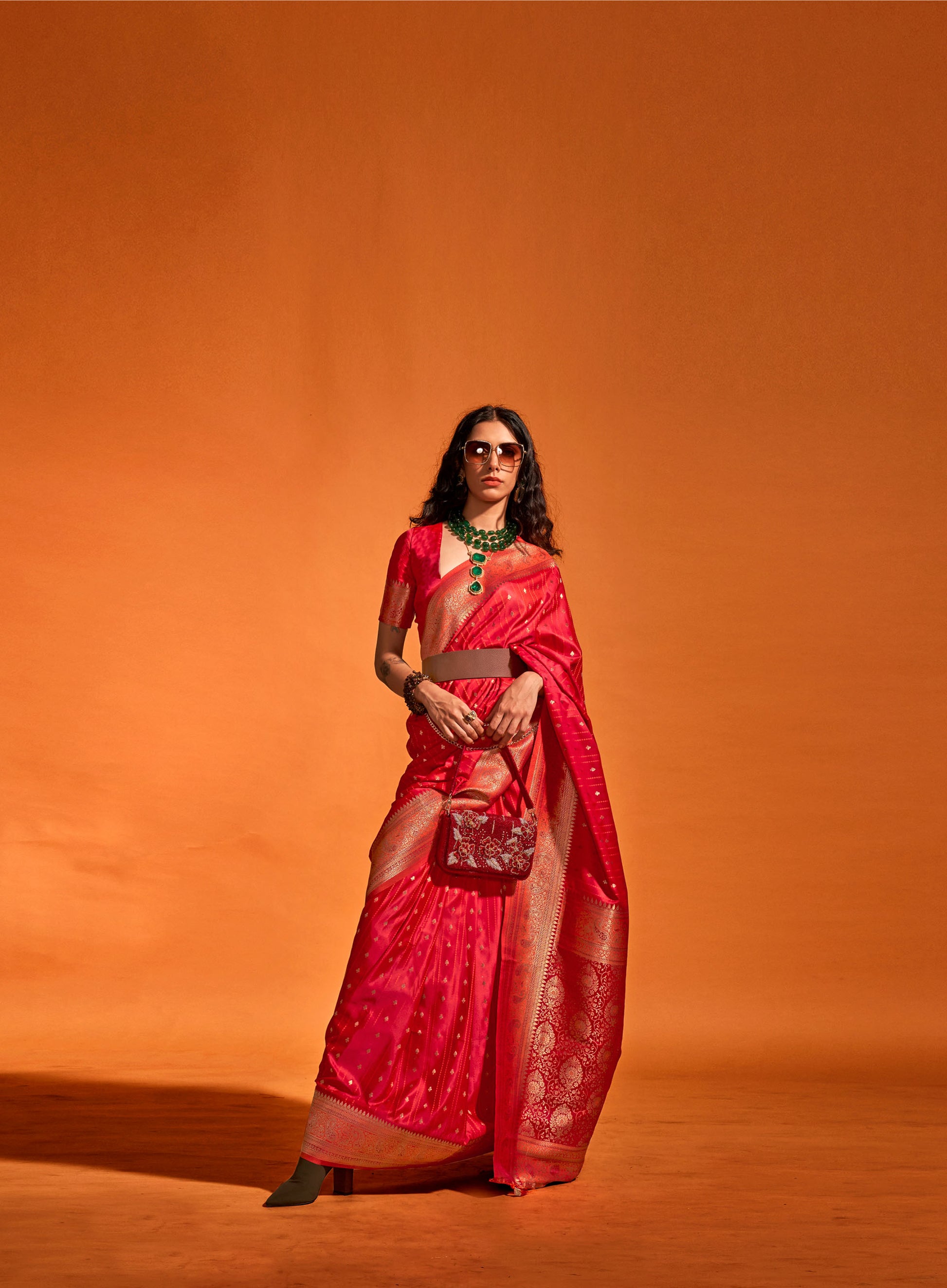 Crimson Red Karnaal Pure Satin Handloom Silk Saree