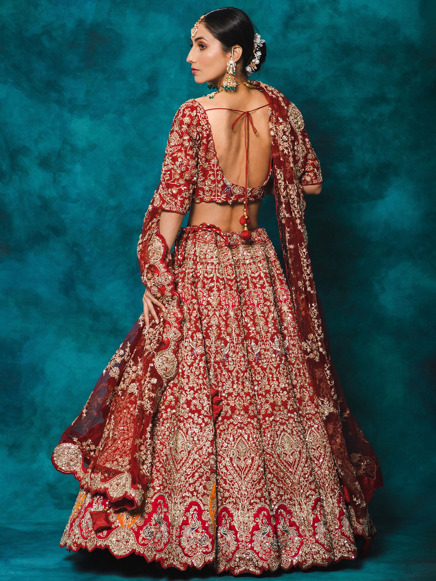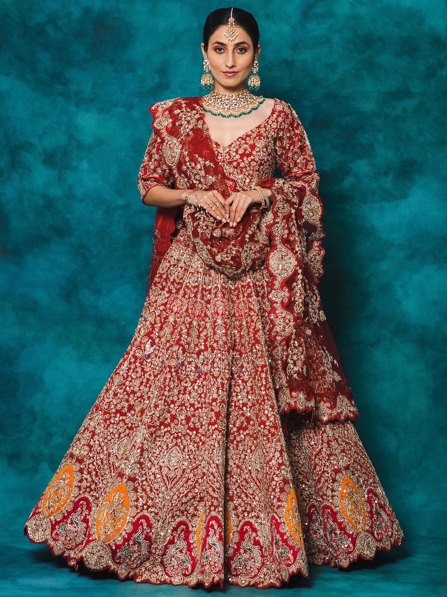 Dark Red Color Zardozi Embroidery Bridal Lehenga