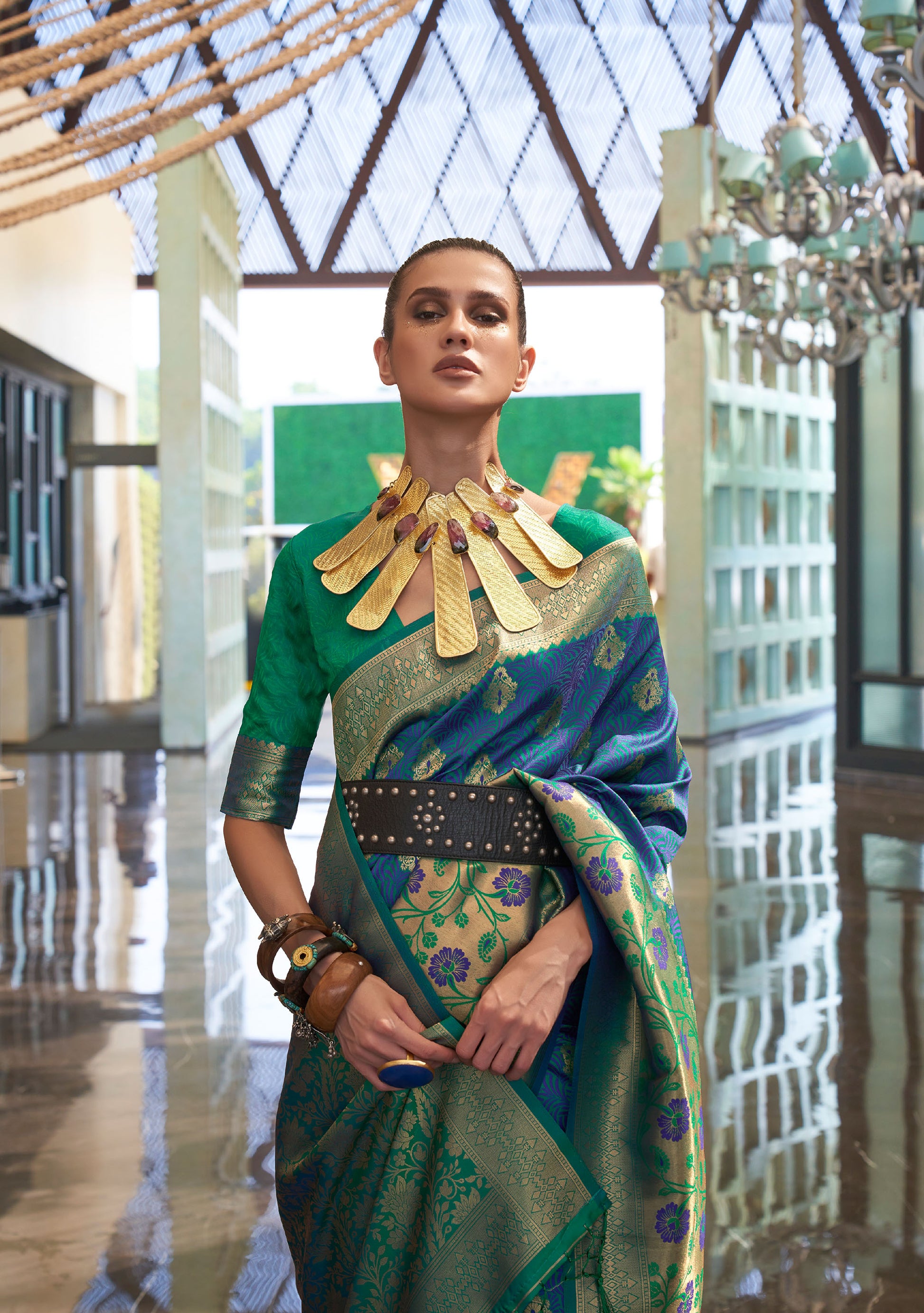 Deep Blue Kalkaa Chaap Handloom silk Saree