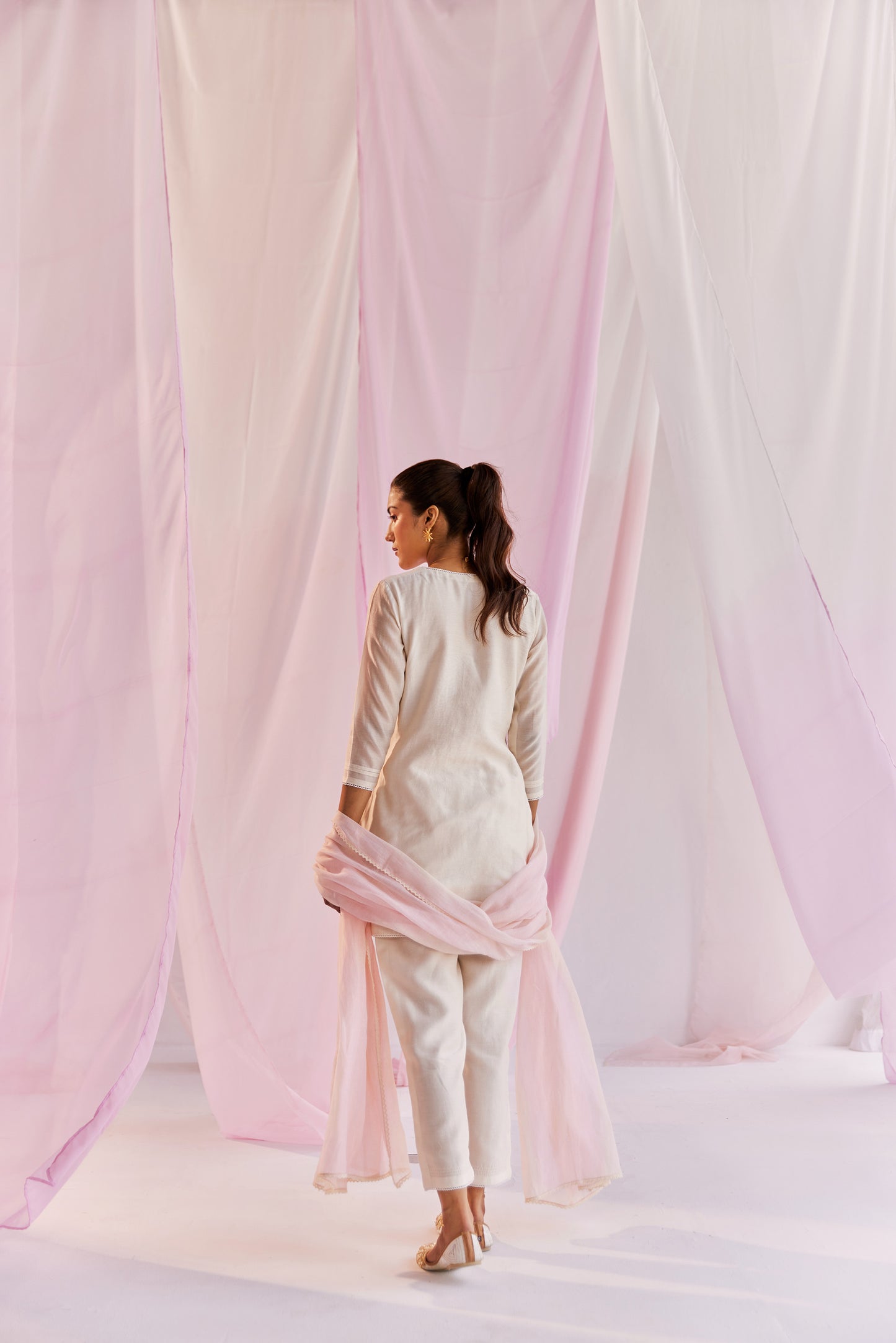 Enya Ivory Chanderi Silk Dori Embroidered Essence Kurta Set