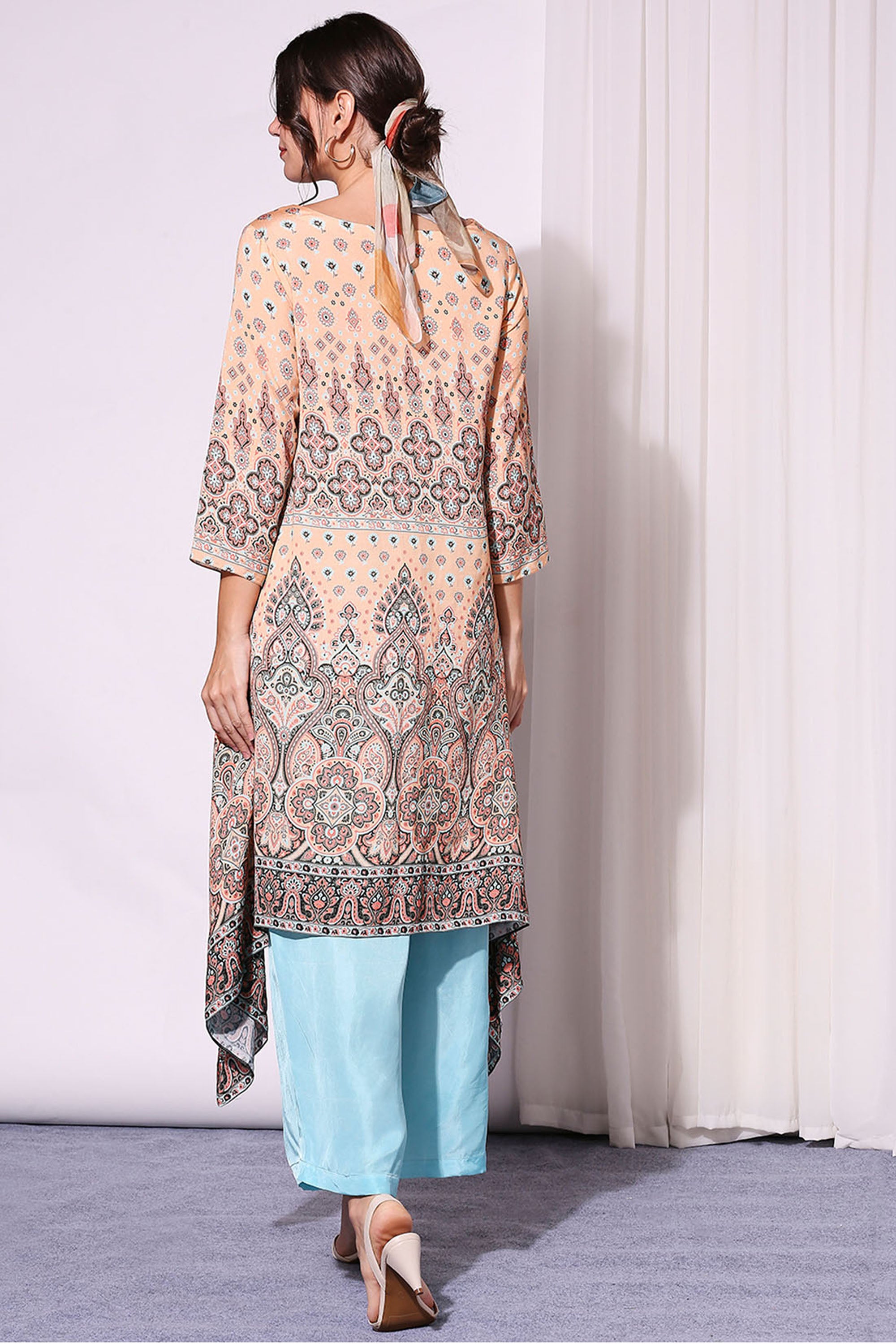 Ethnic Pastel Printed Asyemmetrical Top Paired With Pants