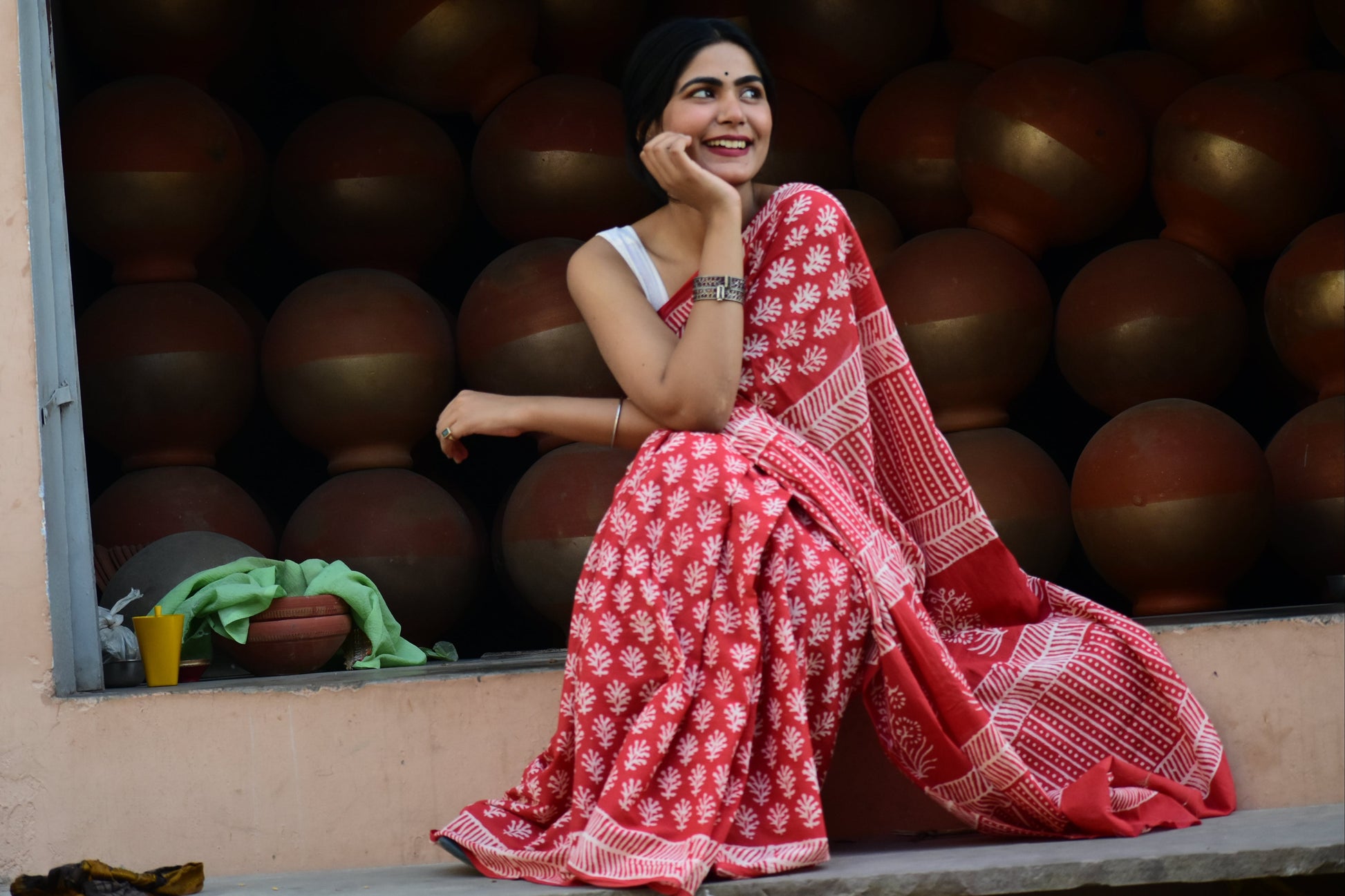 Turn heads this summer with our Red Eye Candy Handblock Print Saree, a perfect blend of tradition and contemporary sass! Crafted from breathable, lightweight fabric, this saree is adorned with exquisite handblock prints that bring out its artistic charm. The bold red hue exudes confidence and vibrance, making it a go-to choice for summer brunches, festive gatherings, or casual outings.Pair it with minimal accessories for a chic daytime look or elevate it with statement jewelry for an evening glam avatar. Designed for the modern woman who loves to blend comfort with effortless elegance, this saree is a must-have in your Sassy Summer Fit collection.