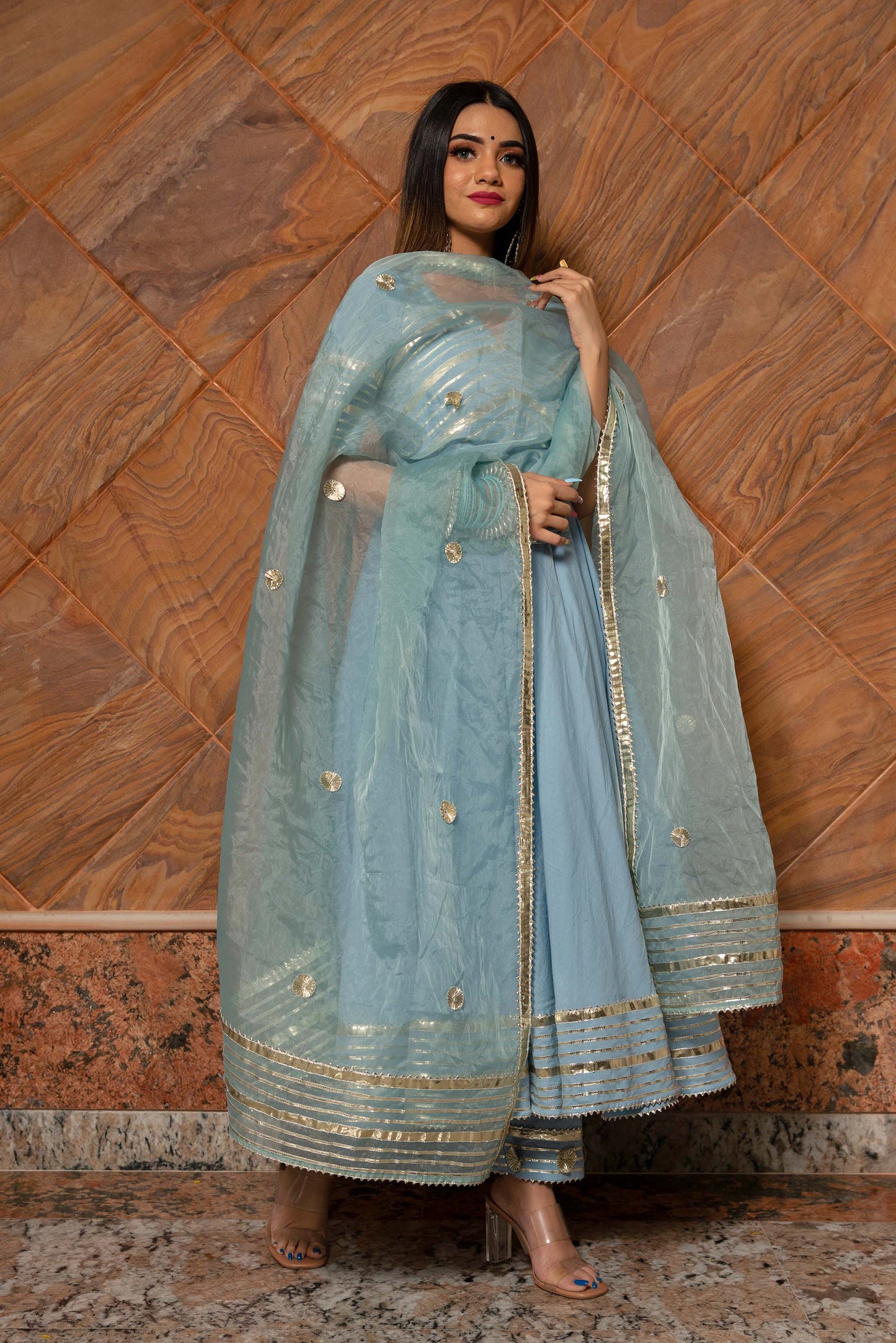 Work: Gotta lace work all over anarkali and bottoms, hand embellished gotta phool work allover dupatta