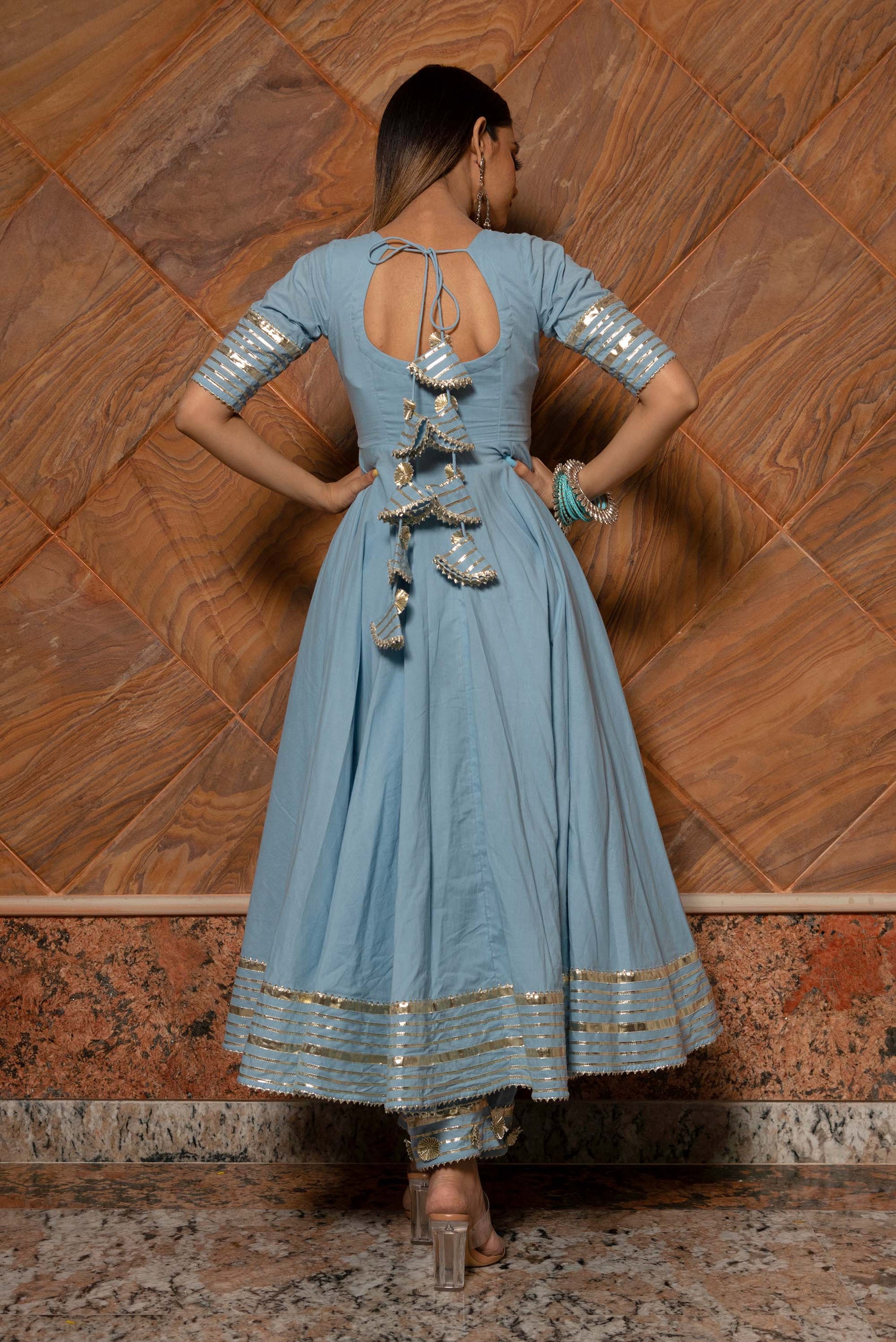 Ganguar Powder Blue Pure Cotton Anarkali Set