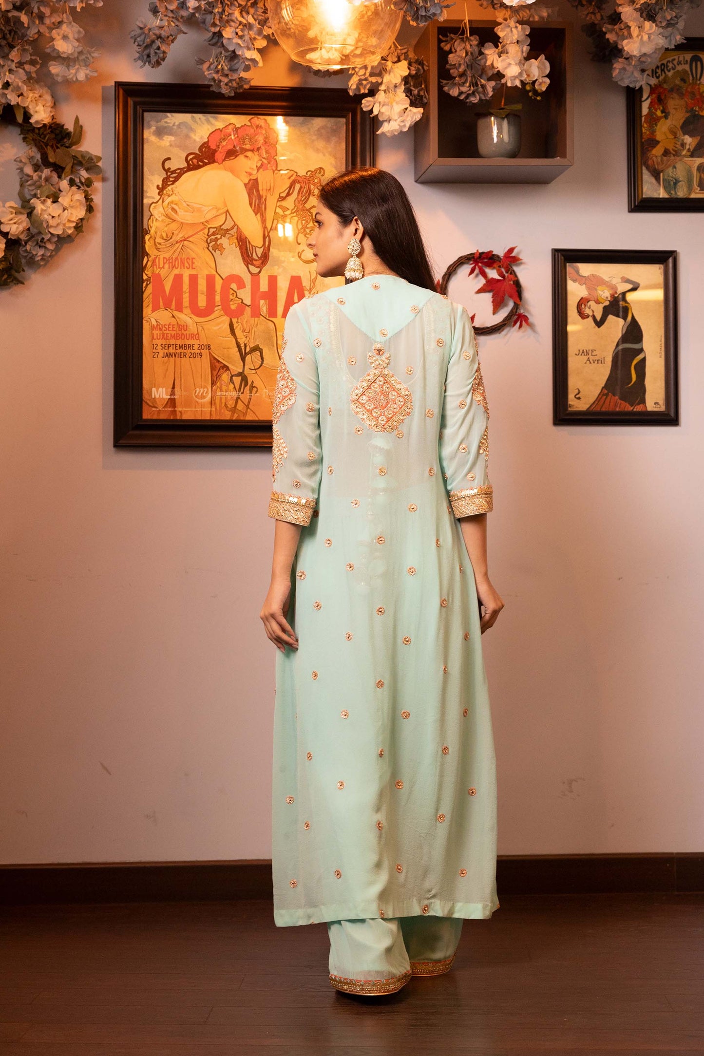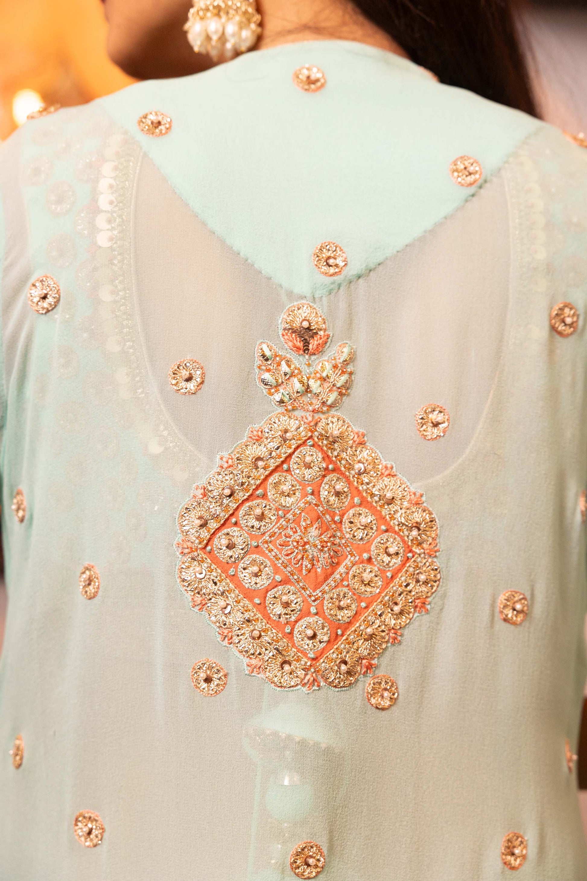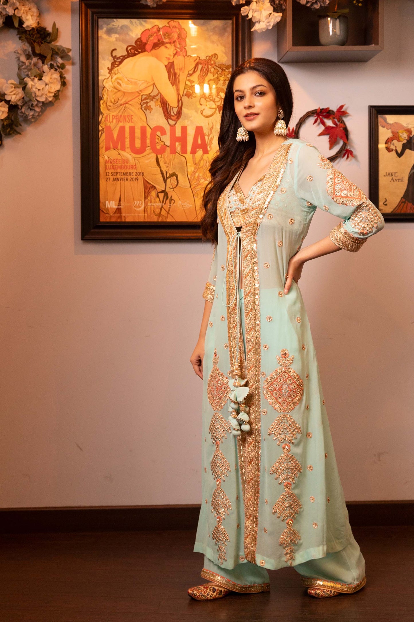 Glitterati Turquoise Georgette Gotta Dori jacket set