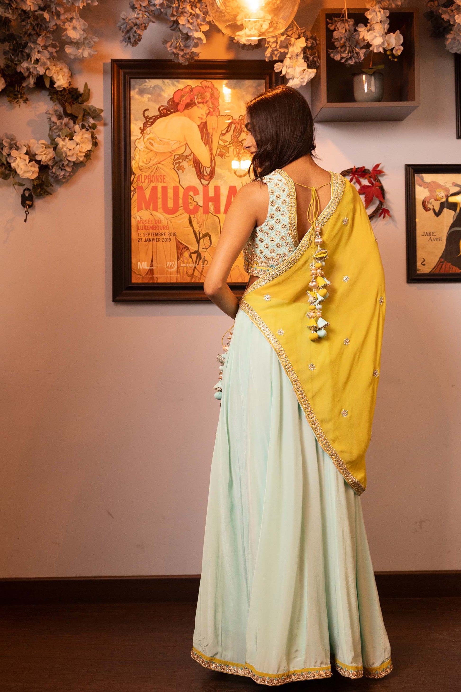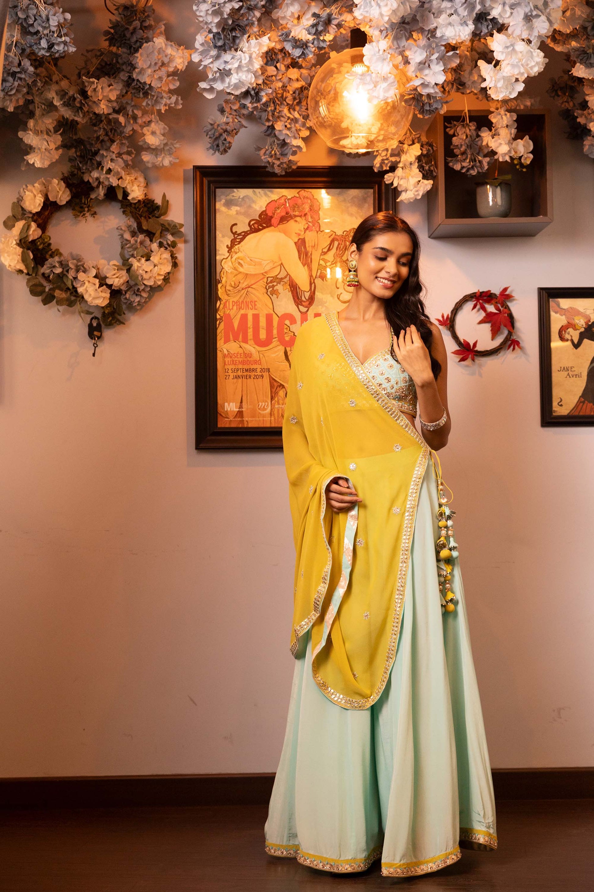 Glitterati Turquoise Georgette Gotta Dori Mehendi Sharara
