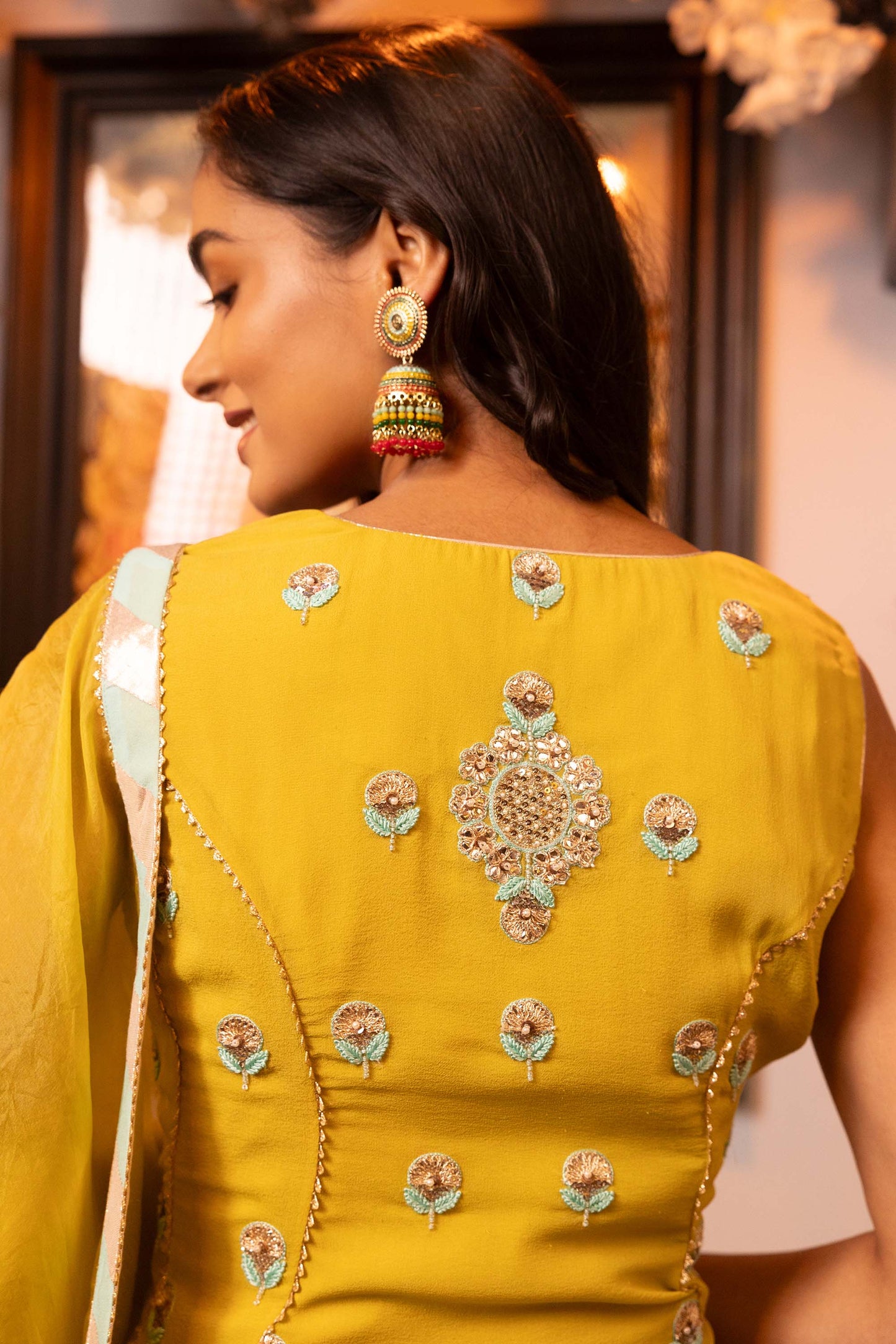 Glitterati Yellow Georgette Gotta Dori Mehendi Sharara