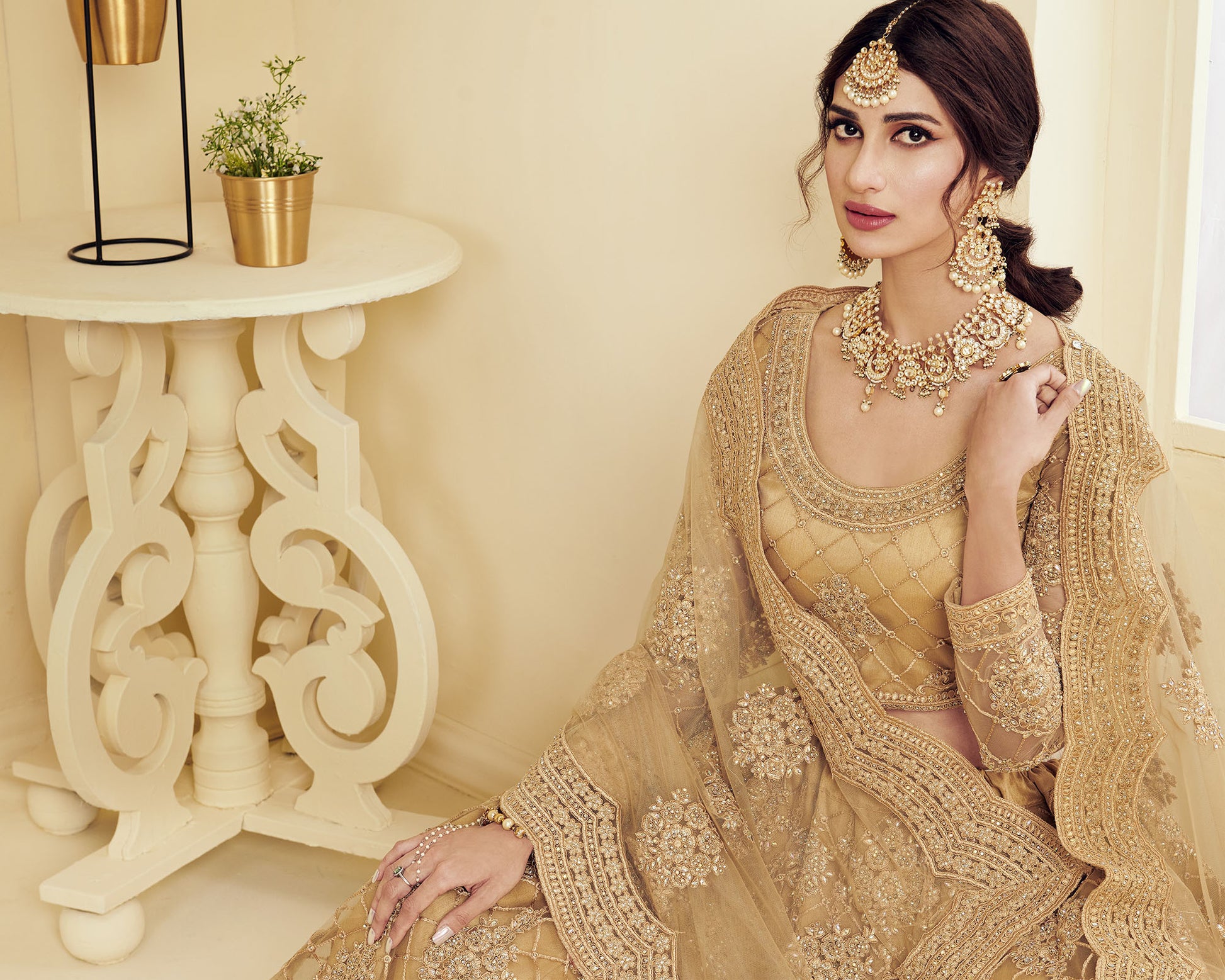 When selecting a Sangeet Lehenga for a wedding, consider opting for vibrant colors, intricate embroidery, and lightweight fabrics like georgette or chiffon, Net for ease of movement during dancing. Popular colors include emerald green, peach, royal blue, but there are also modern options like beige, silver, or light pink. Choose designs that reflect your personal style and complement the overall theme of the event. Pay attention to comfort without compromising on elegance, and don't forget to accessorize appropriately with statement jewelry and footwear to complete the look.