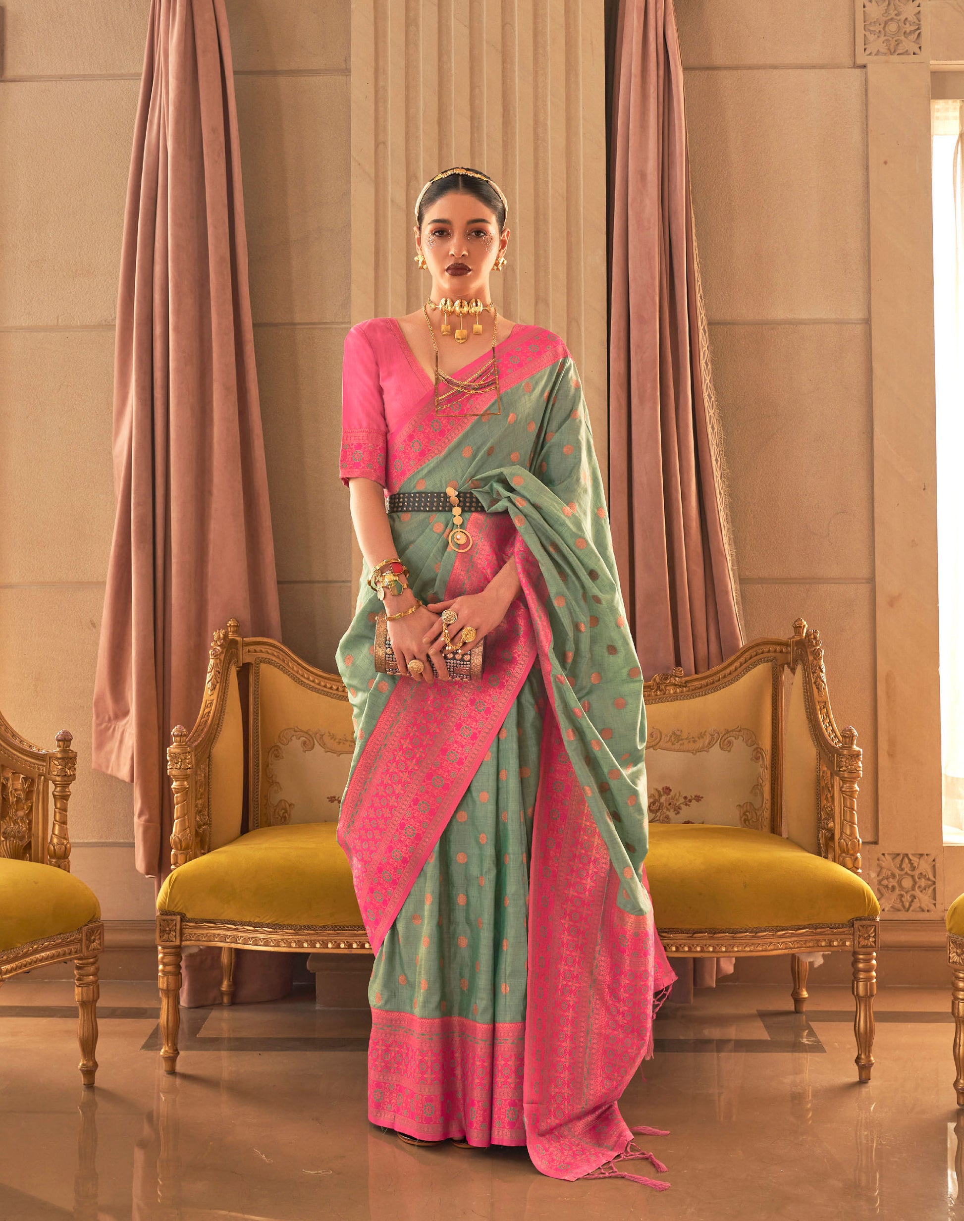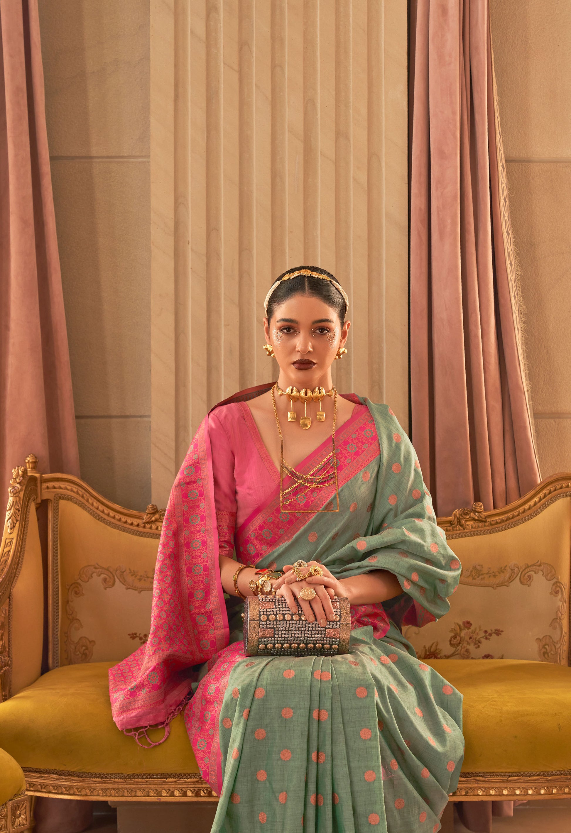 Green Kamsaara Bamboo Copper Zari Handloom Saree