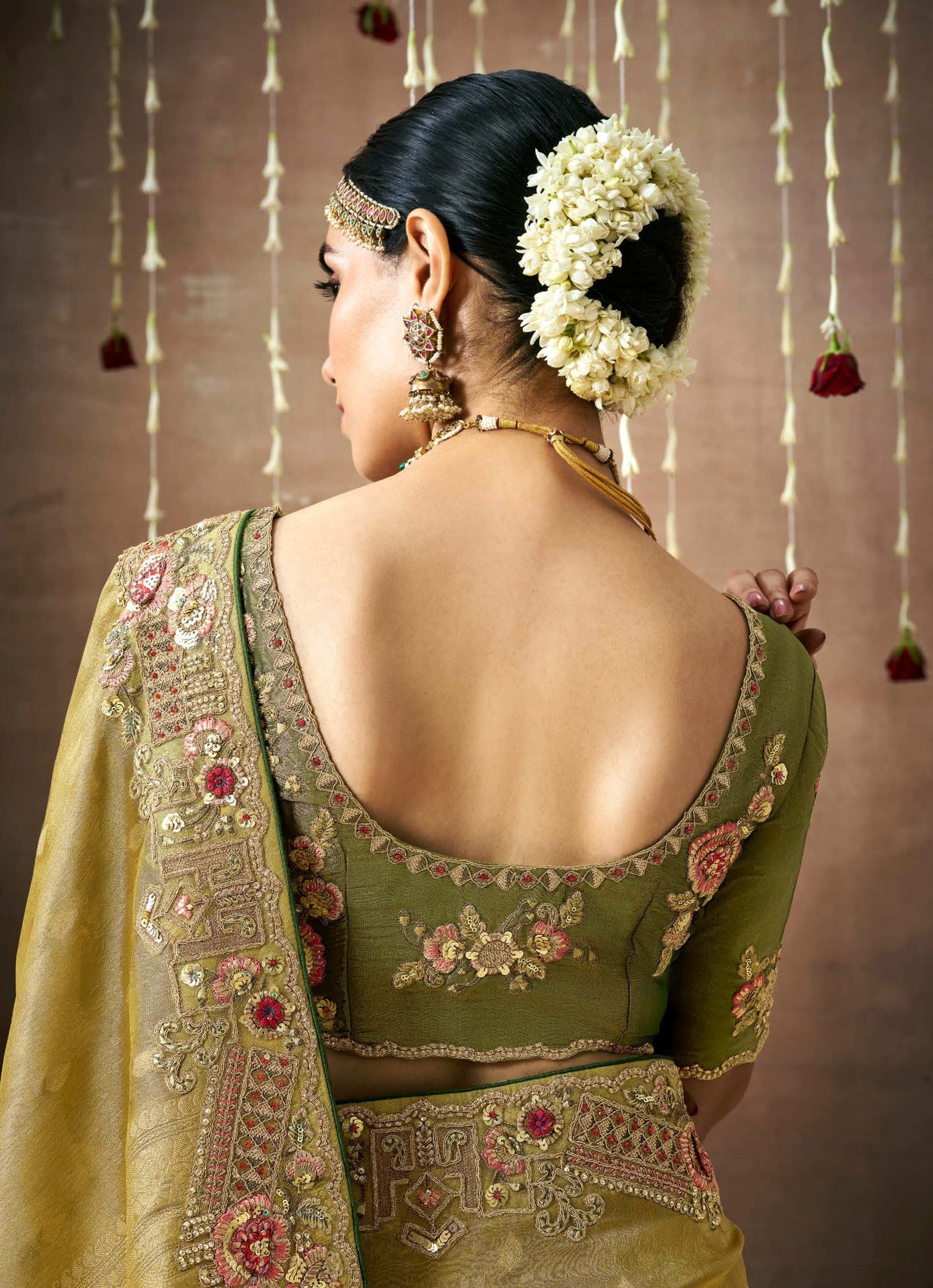 Green Tissue Dola Silk Pearl & Mirror Embroidery Dulhan Saree