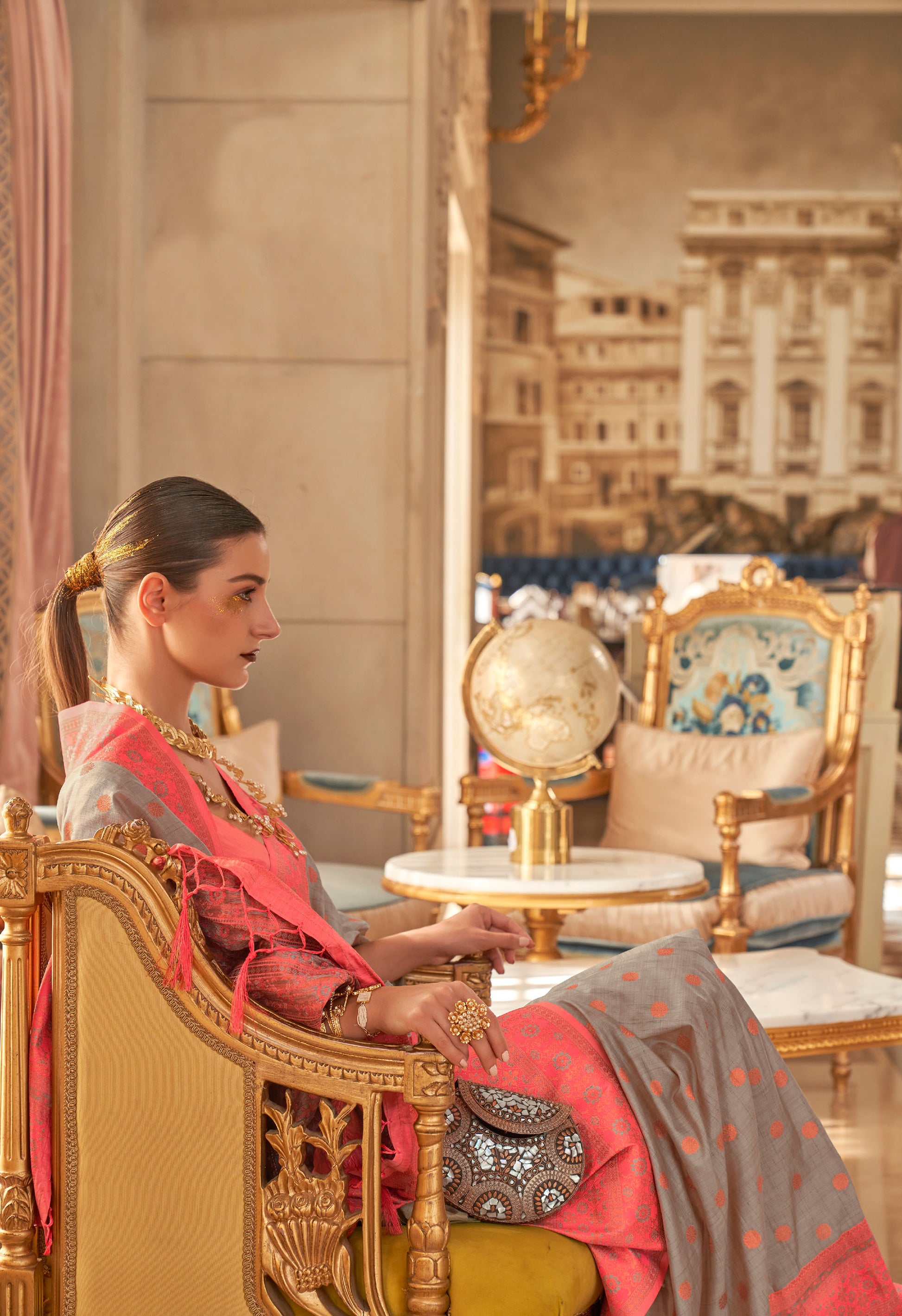 Grey Kamsaara Bamboo Copper Zari Handloom Saree