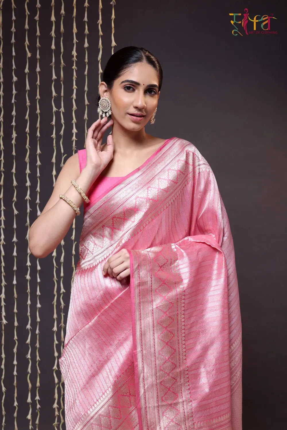 Handloom Pink Pure Silk Brocade Banarasi Saree