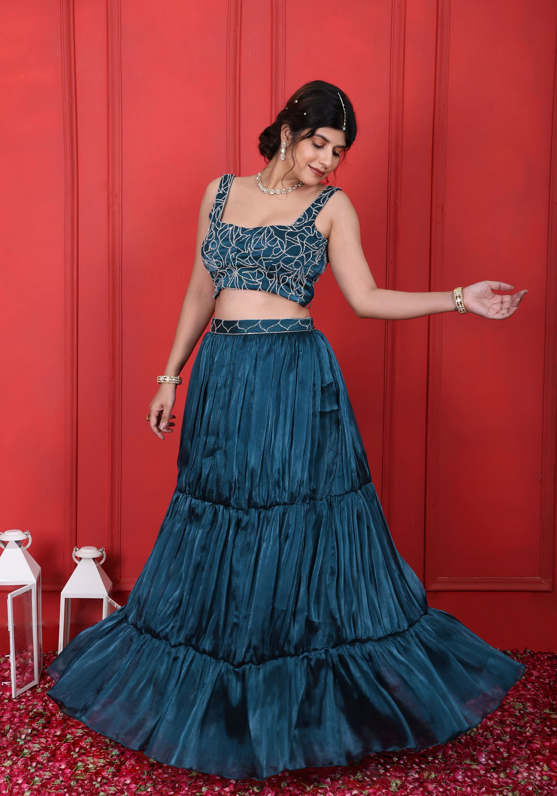 Heavy Hand Embroidered Blouse With Layered Skirt