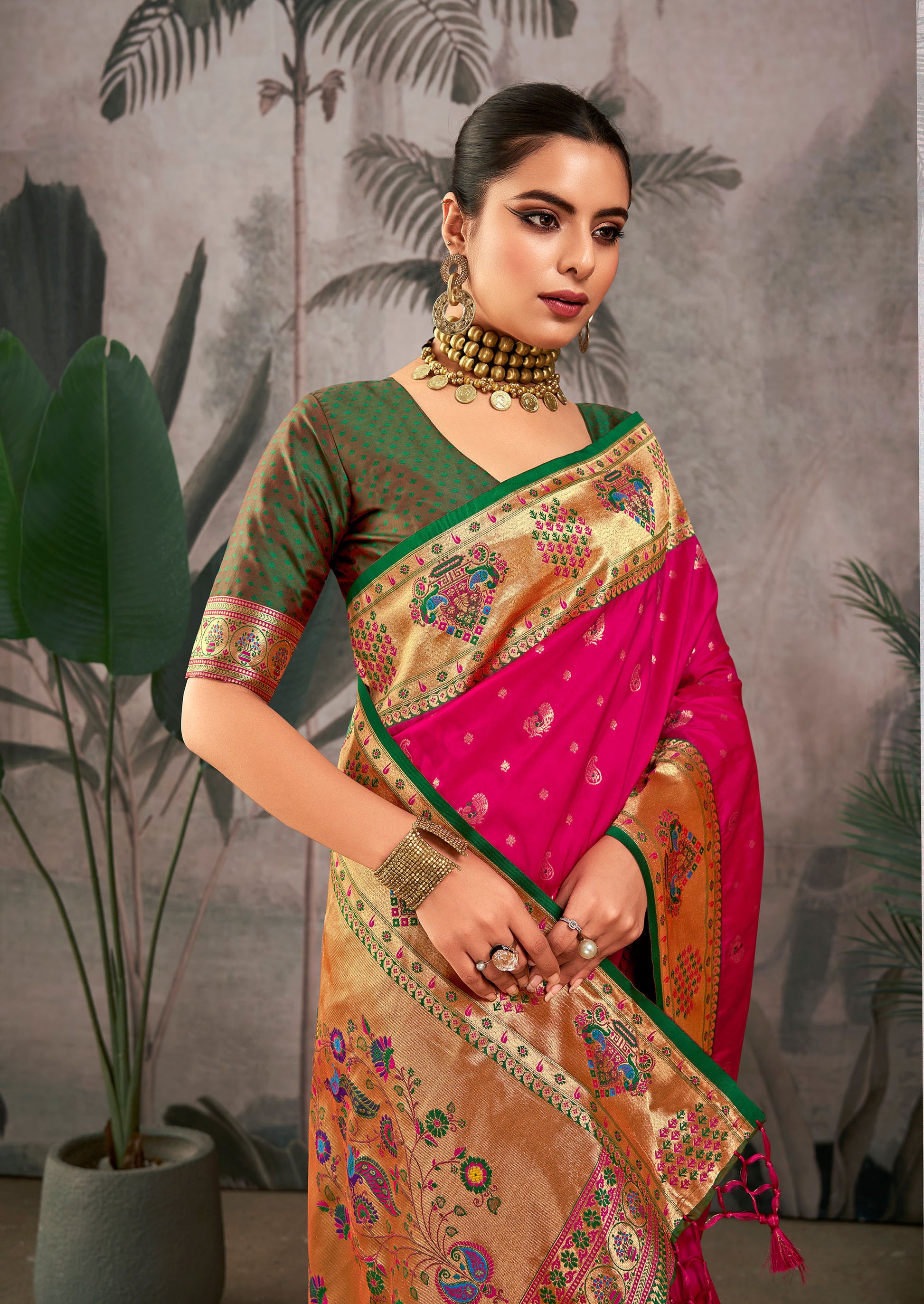 Isha Rani Pink Paithani Silk Zari woven Saree