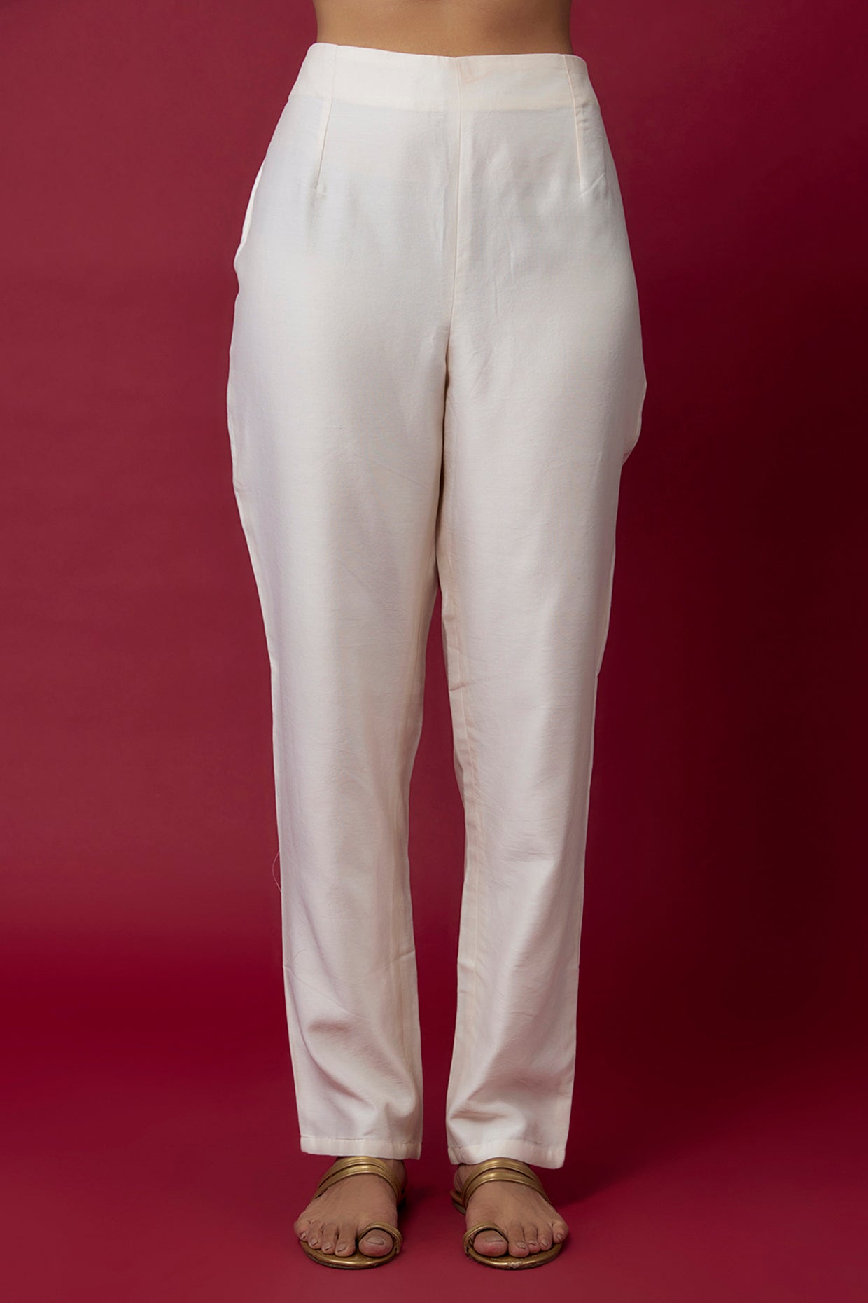 Featuring An Ivory Kurta In Chanderi Base With Sequins, Thread, Cutdana Hand And Machine Embroidery. It Is Paired With Pants And An Organza Dupatta. Accentuate It With Statement Jewellery And Heels For Festive Occasions.
