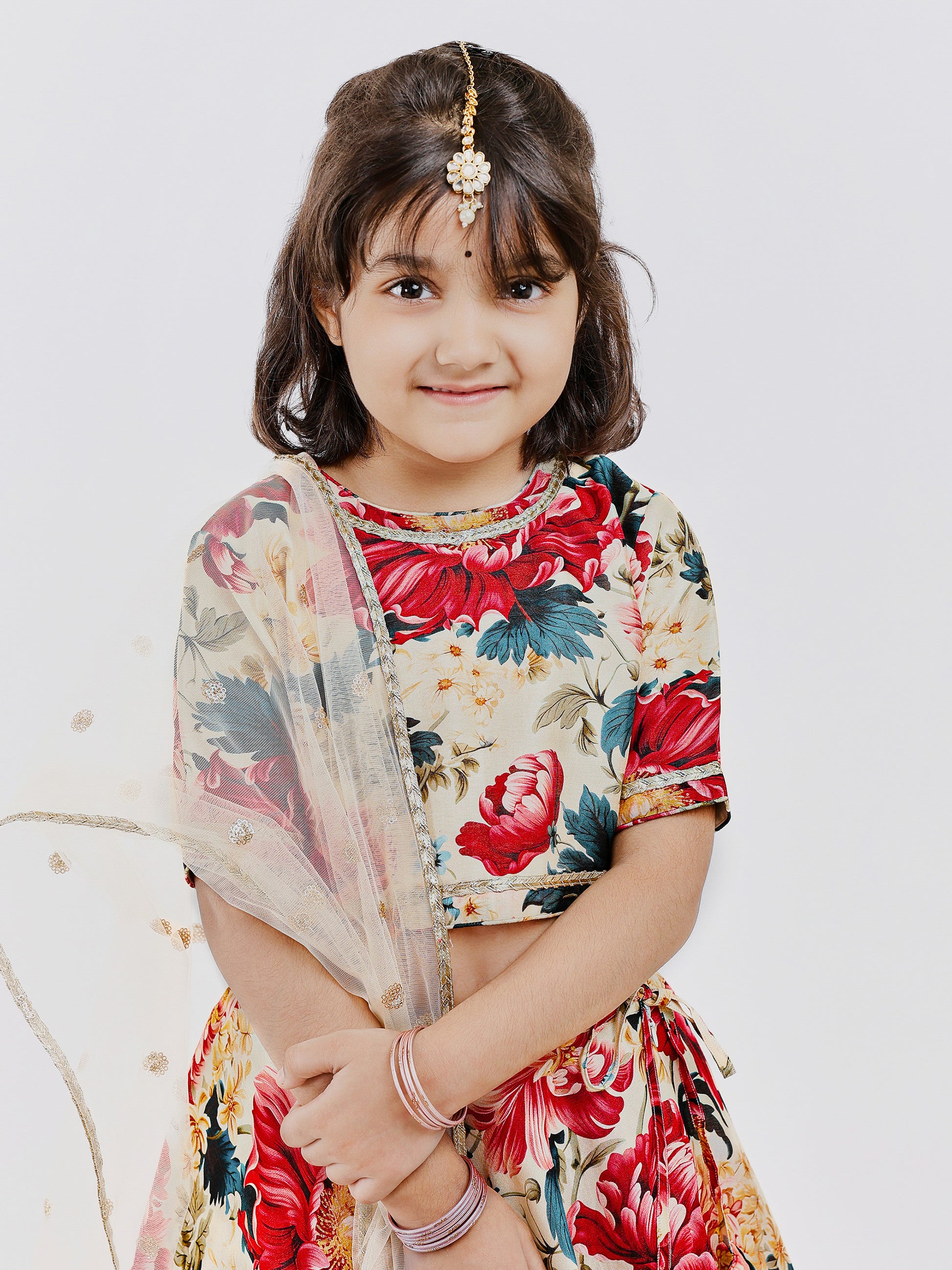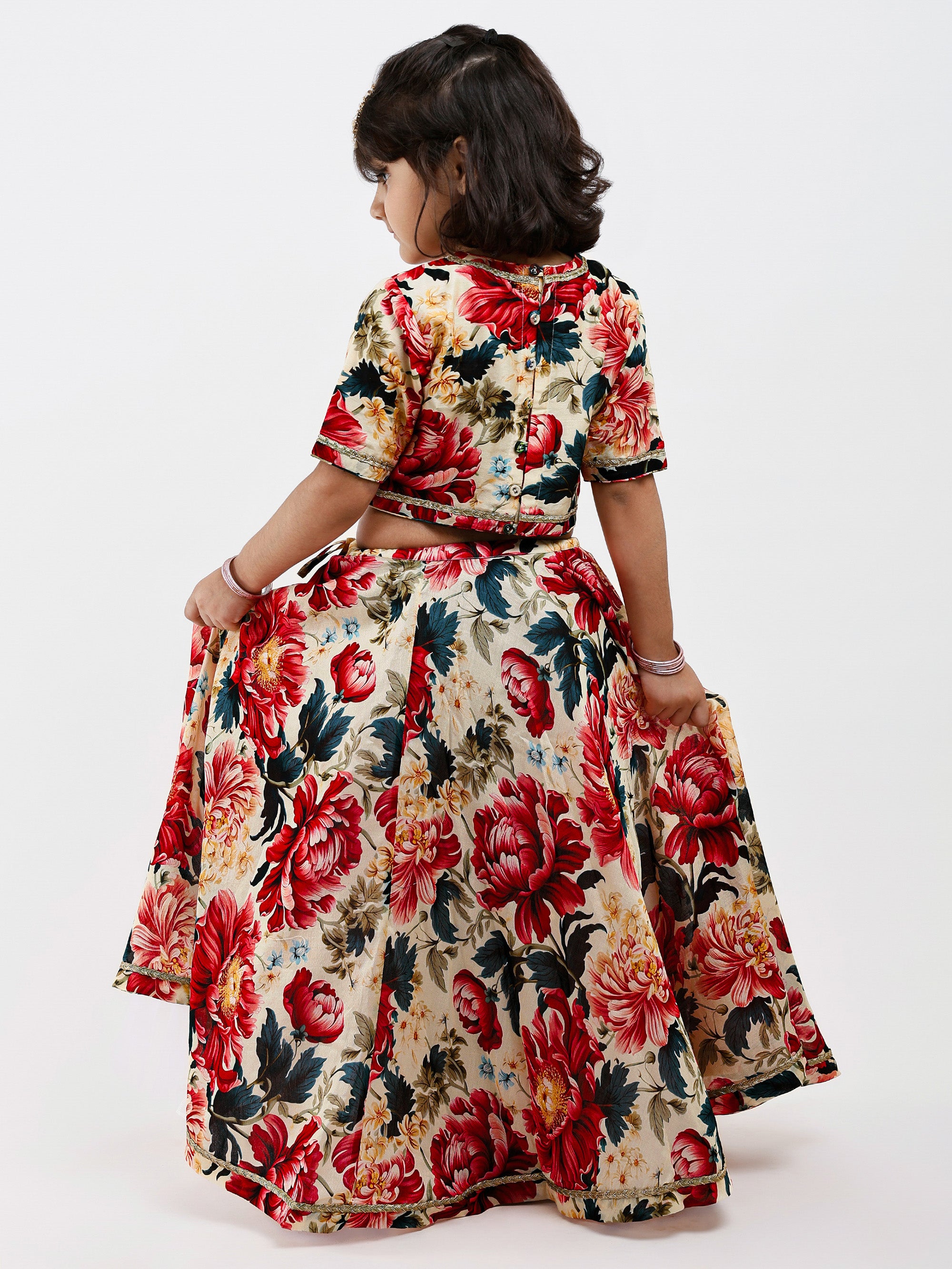 Ivory handwoven chanderi Floral lehenga for girls