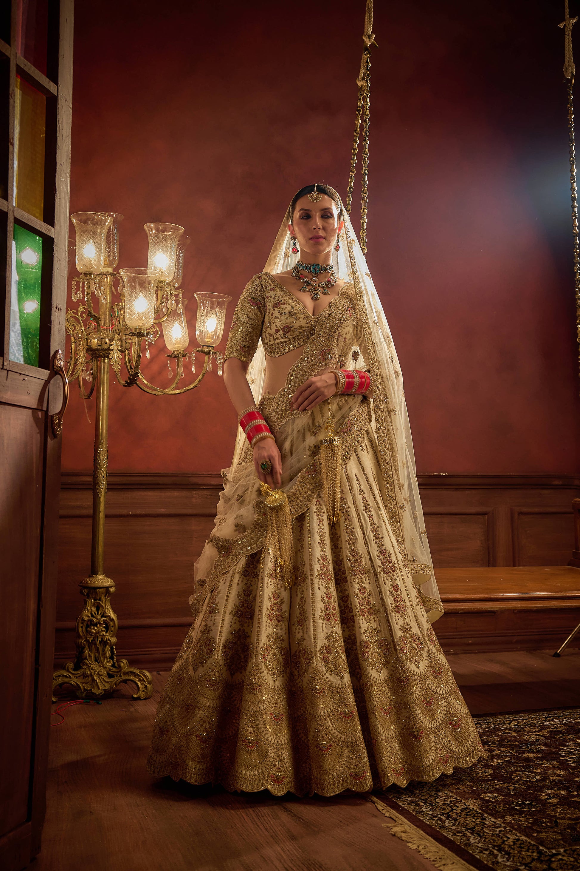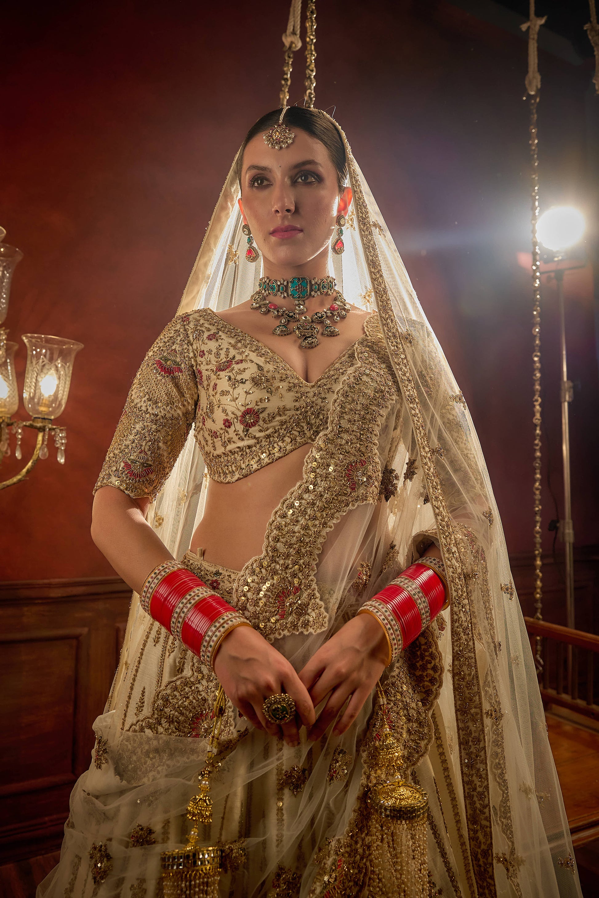 Ivory Raw Silk Hand & Machine Embroidered Lehenga Set