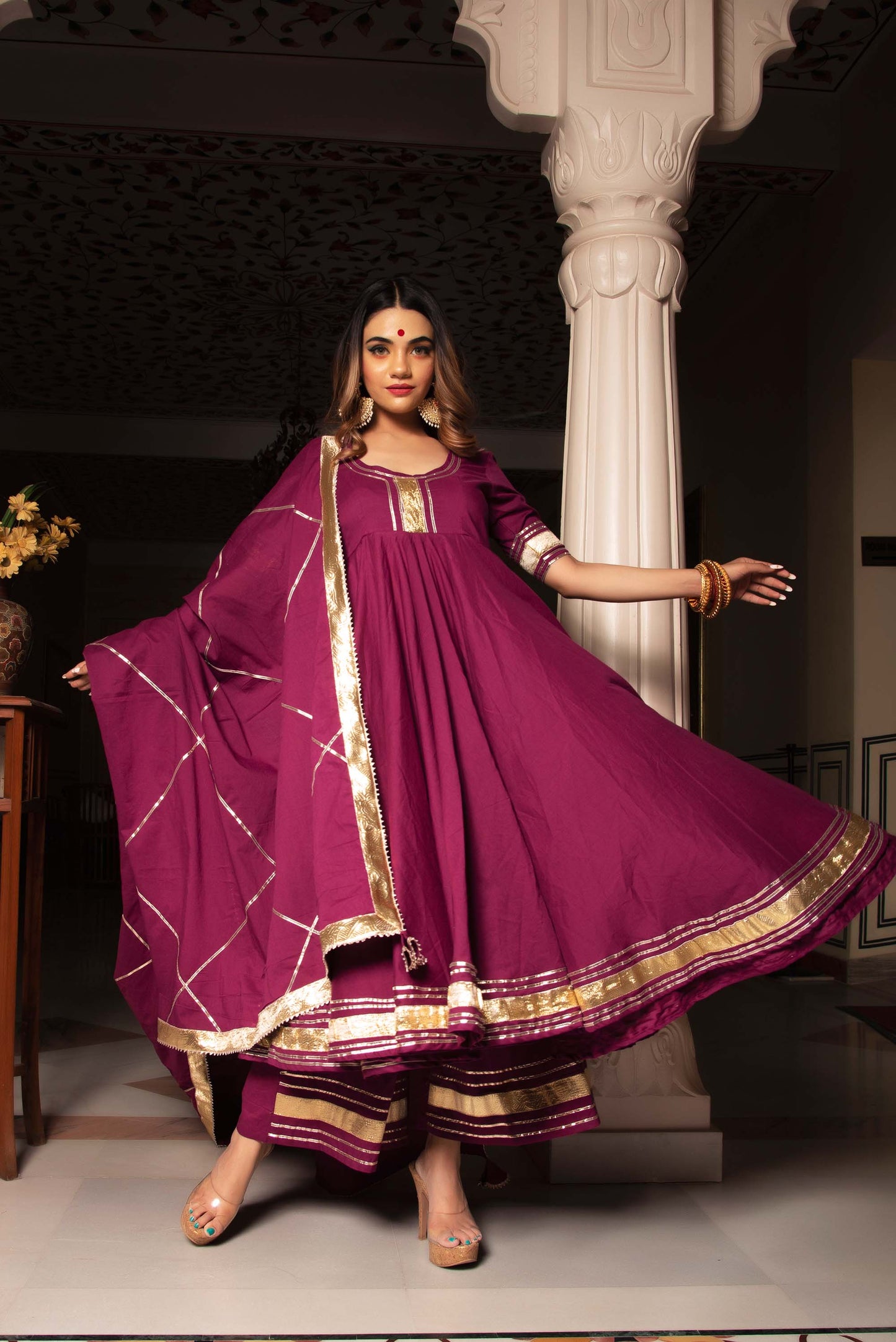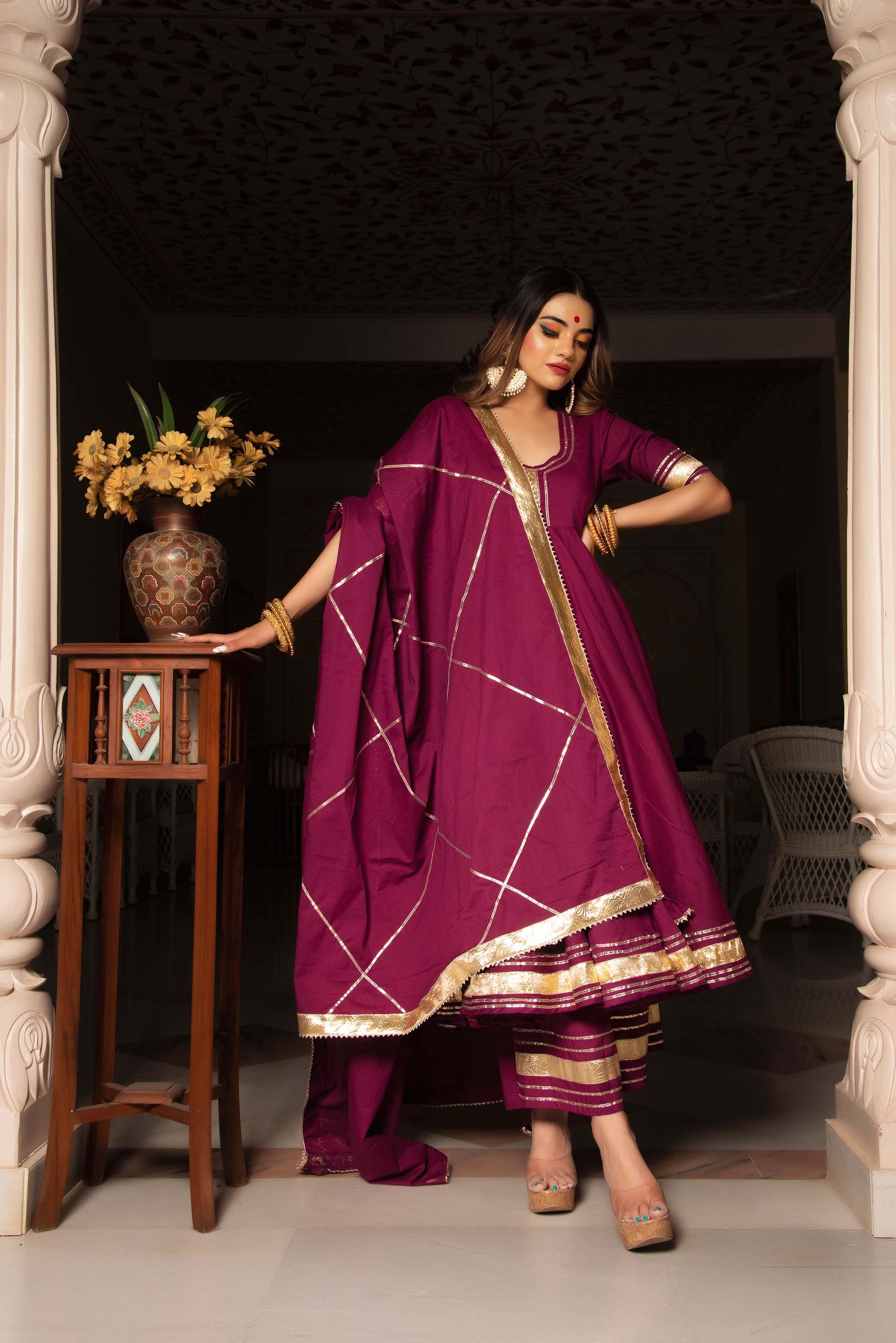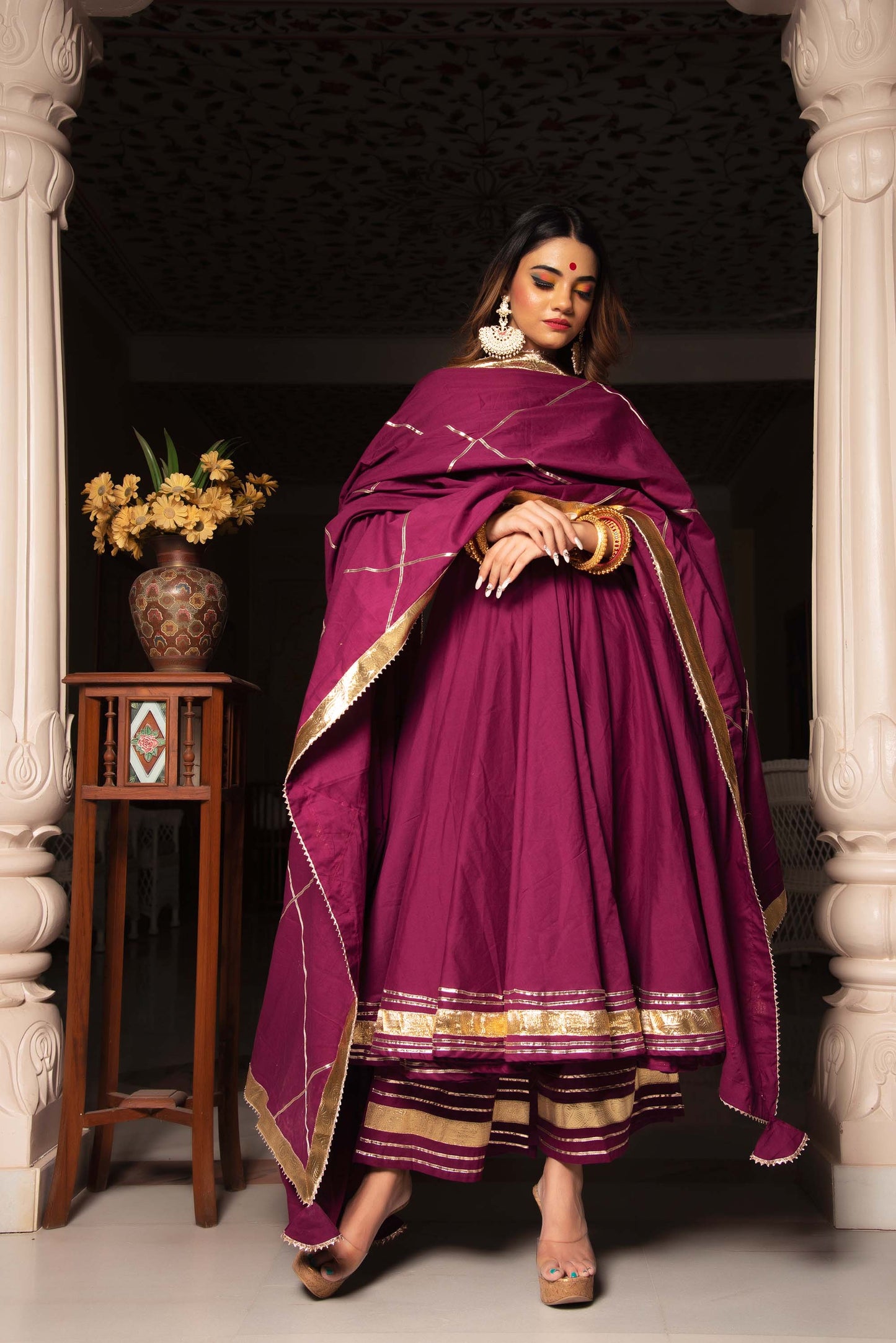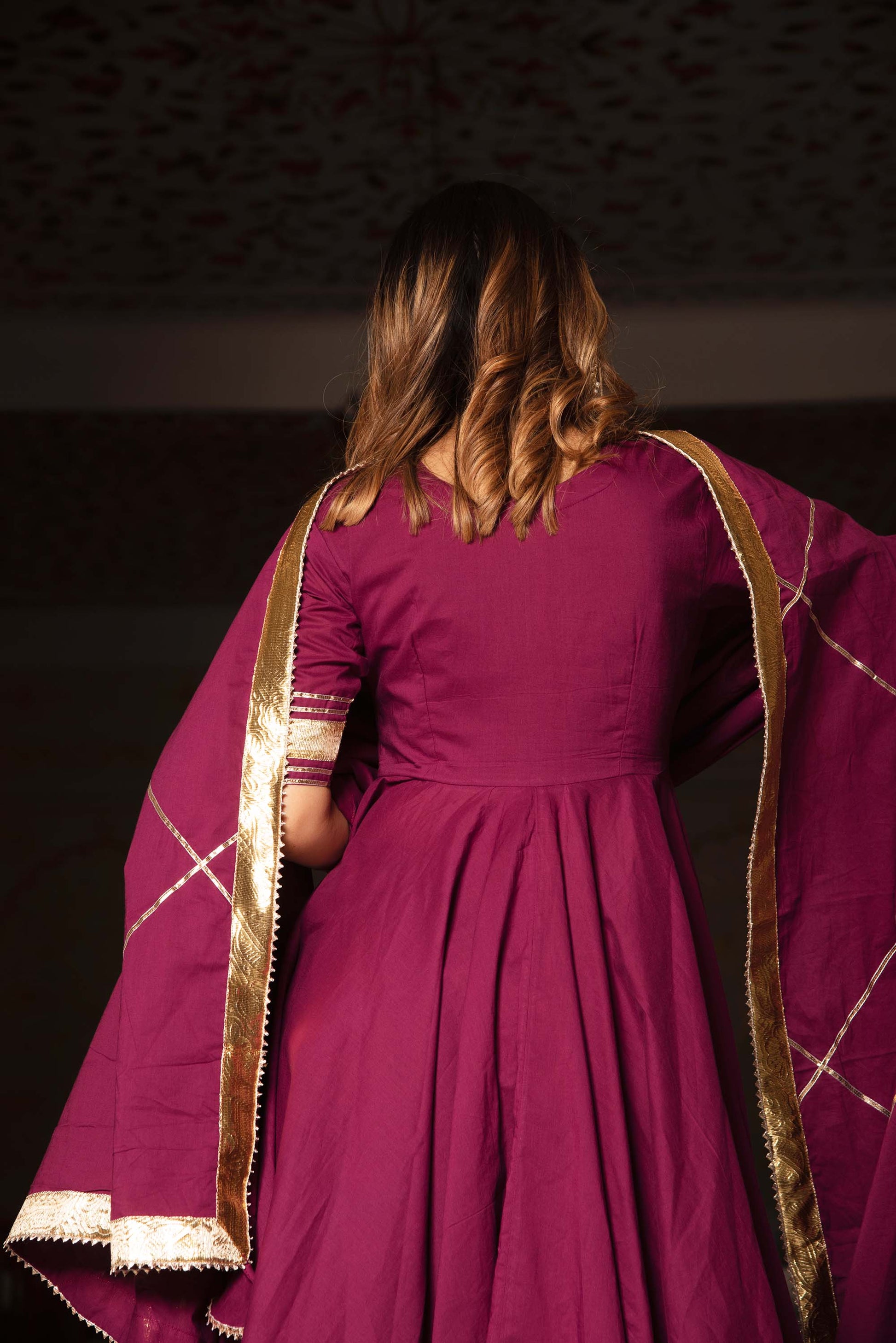 Jarokha Burgundy Pure Cotton Anarkali