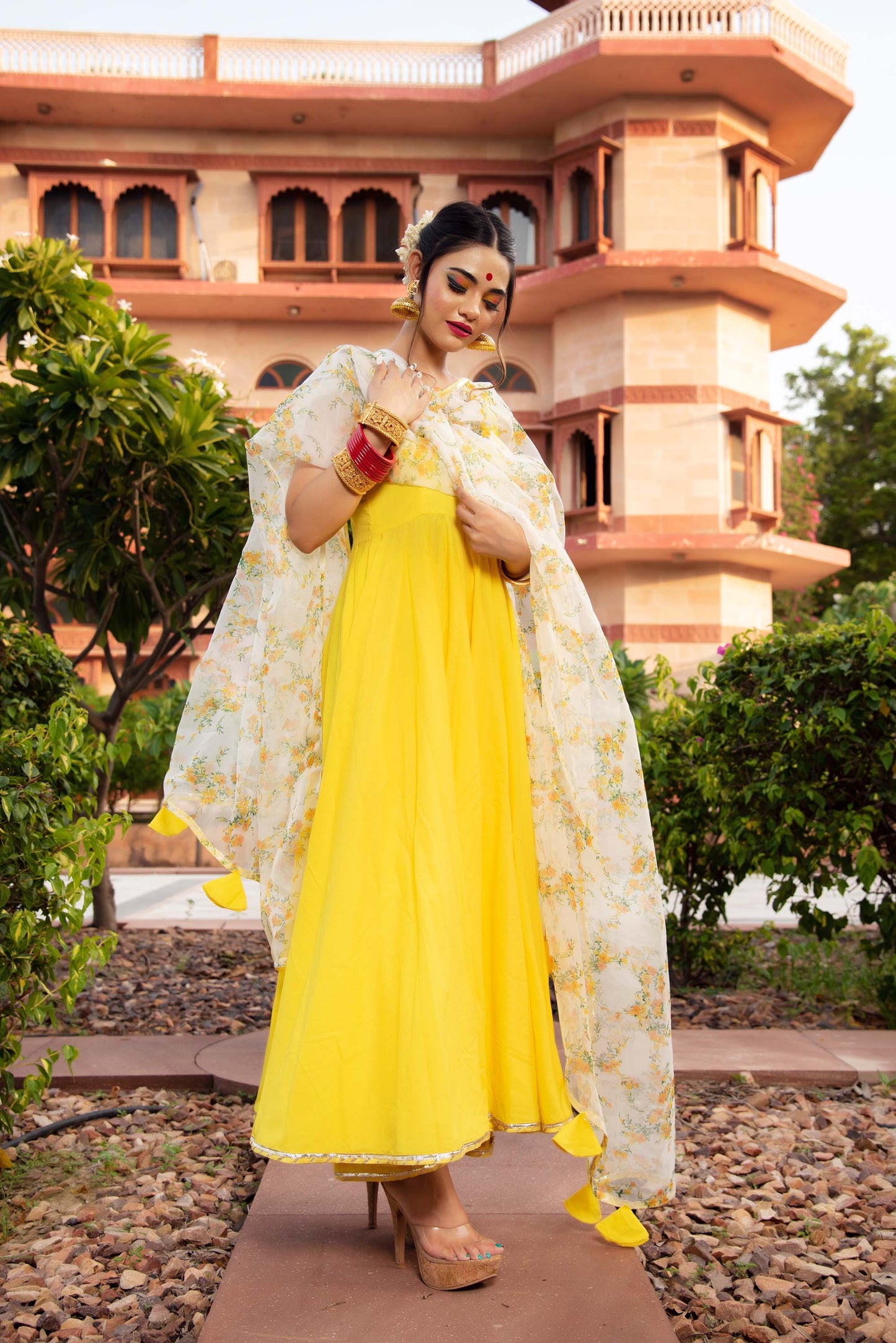 Fabric: Anarkali - Cotton , Pants : Cotton, Dupatta : Organza