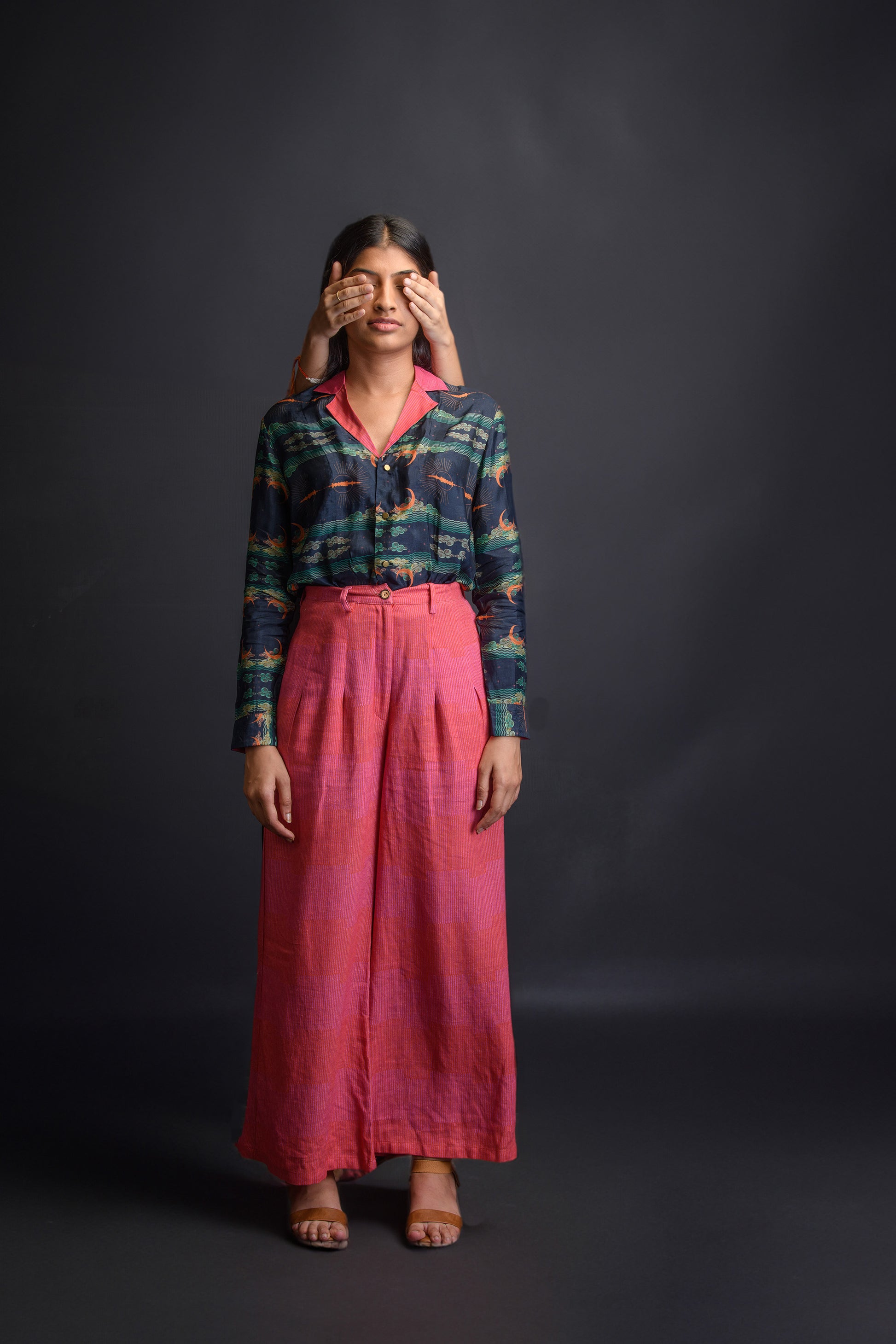 This Khwaab Shirt is crafted from high quality upada silk & Noor trouser is crafted from a high-quality linen. It is a stunning combination of exquisite fabric upada silk, linen & quality digital print.Feel fashionable & stylish in this combination. It is sure to make a lasting impression. It it a perfect garment for any occasion.