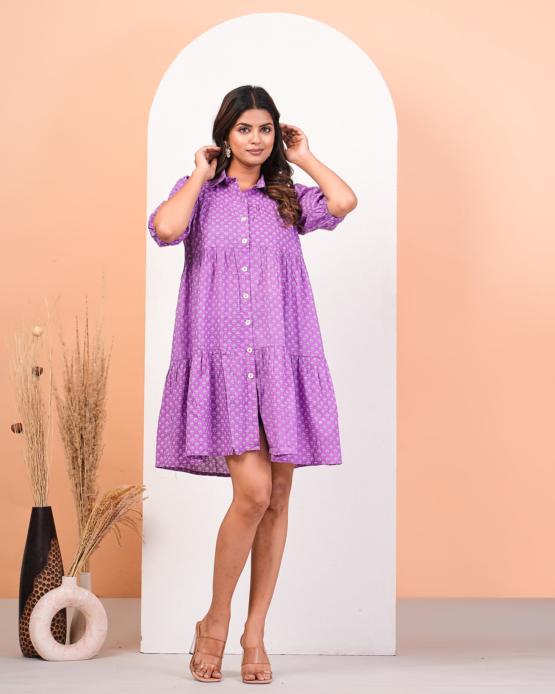 Lavender Pink Lalic Layered Shirt Dress With Shell Buttons