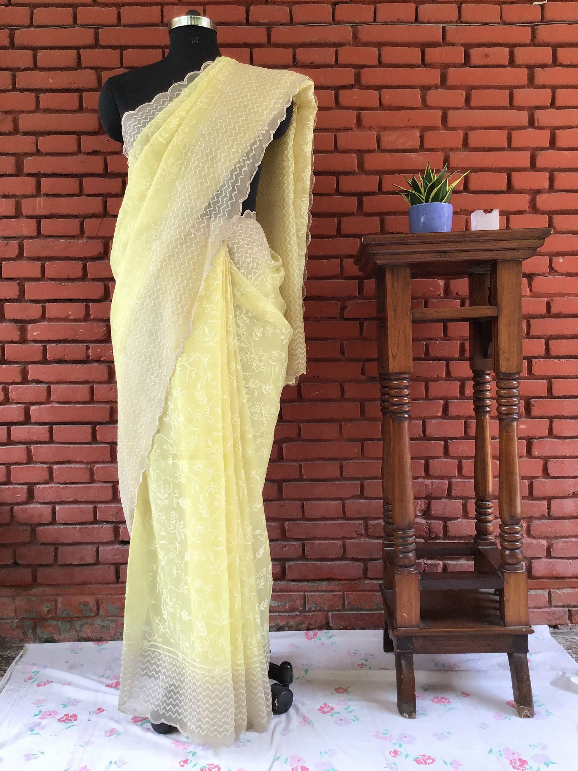 Lemon Baish Pure Silk organza Tepchi Pure Chikankari Saree