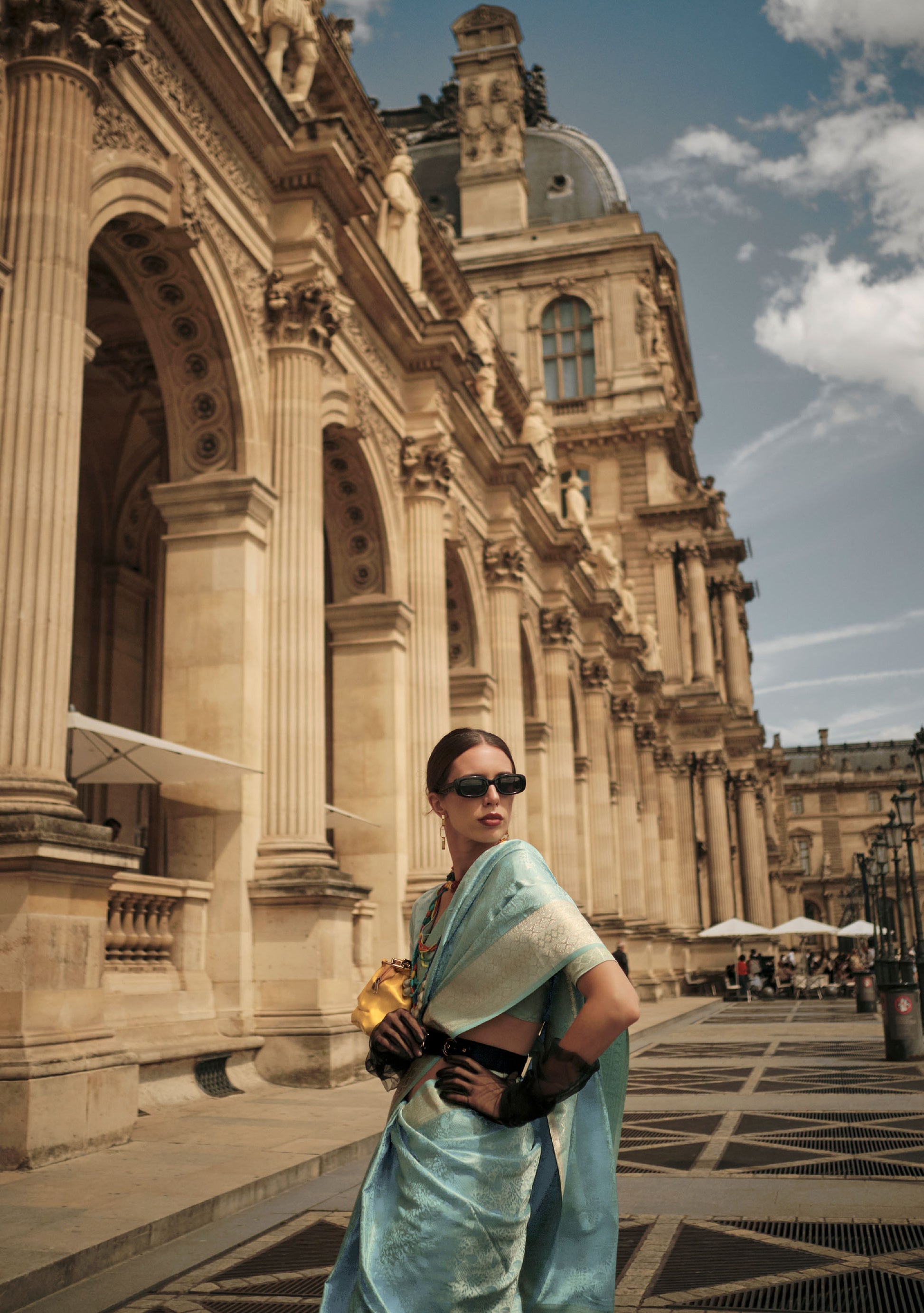Light Green Kavinci Silk Pure Satin Handloom saree