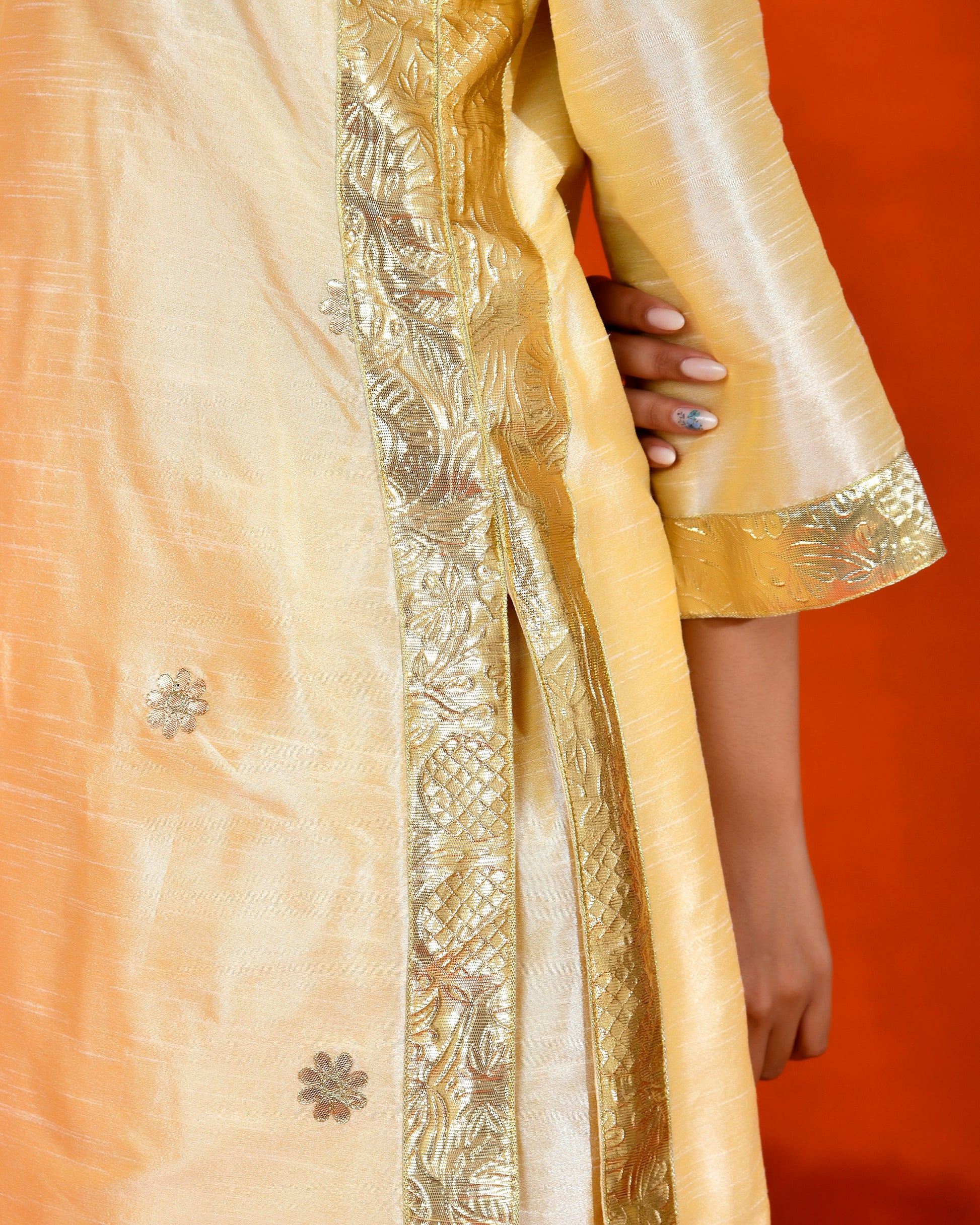 Light Pastel Yellow Dupion Utsav Embroidered Jaipuri Kurta set