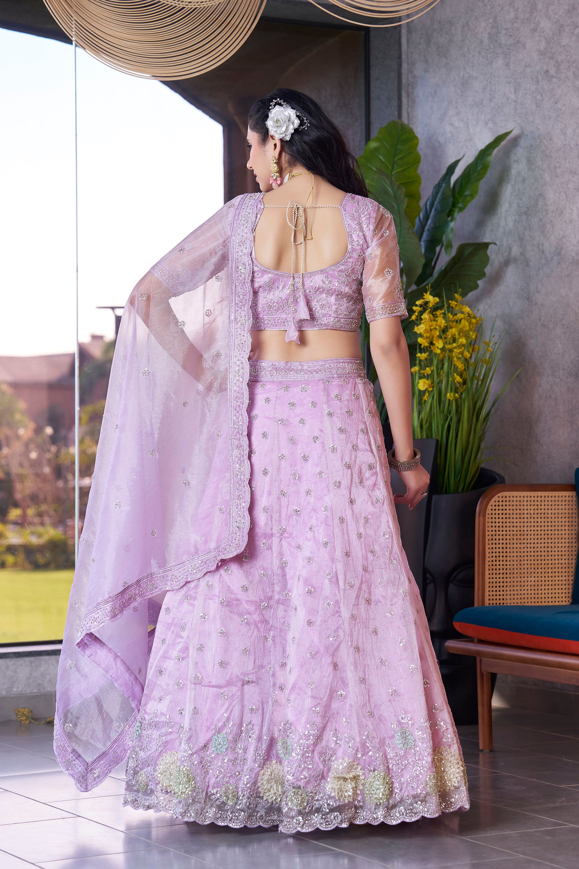 Lilac Zarkan and Sequence Embroidery Fendi Silk Bridesmaid Lehenga