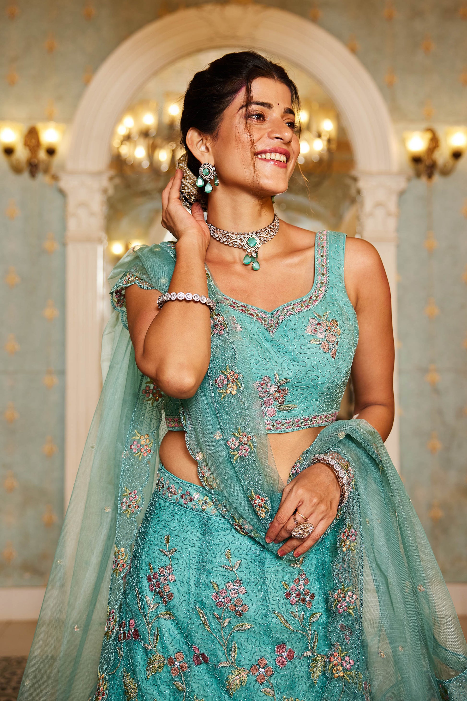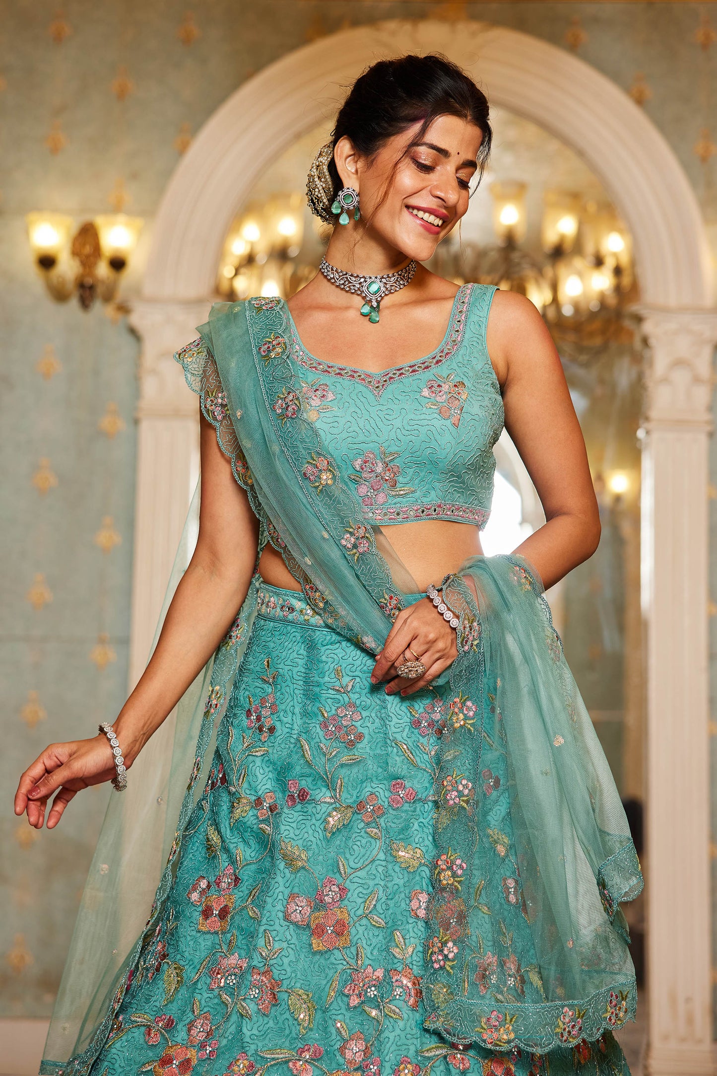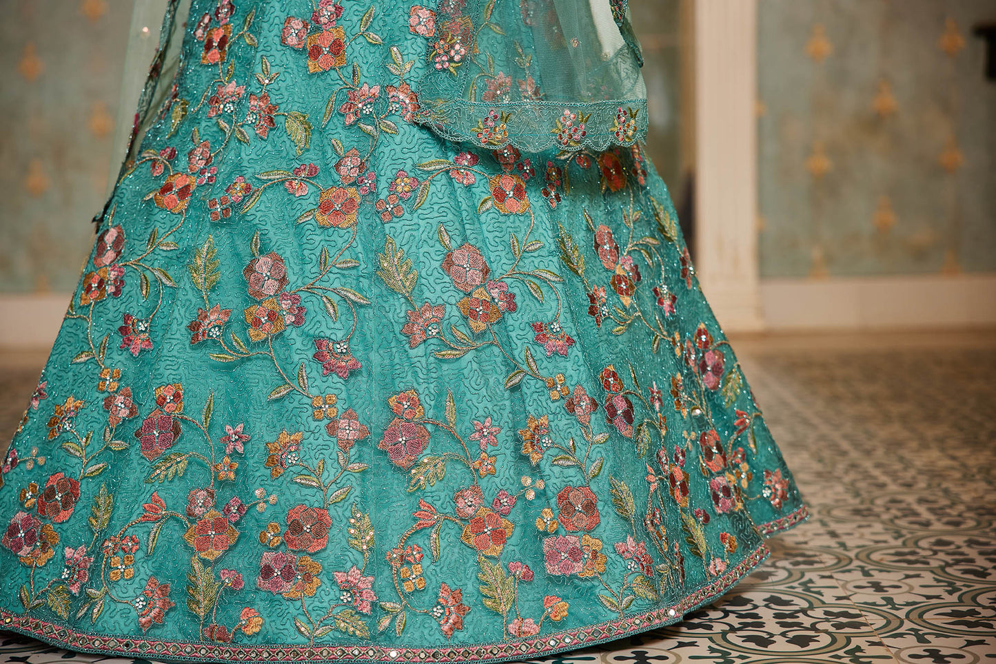 Lime Green net with Coding & Zarkan embroidery Lehenga choli & Dupatta